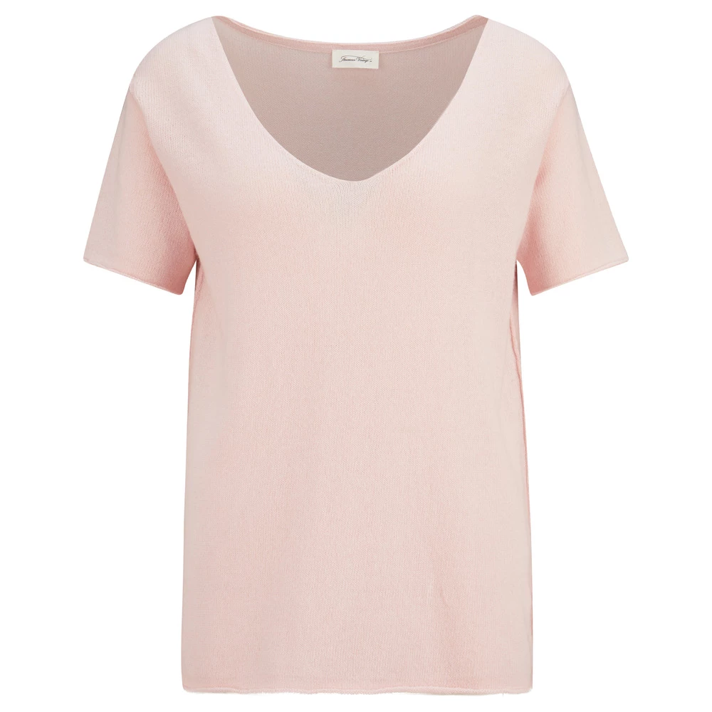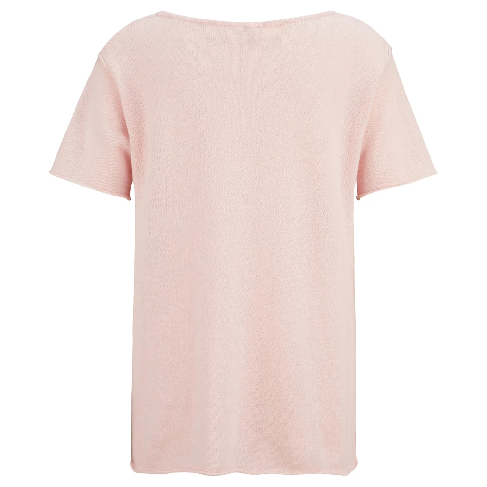 – Sommerstrikkegenser laget av kashmir i rosa-passform: Regelmessig passform-tiger kutt- videre V-hals med glatte kanter- korte ermer med sying detalj på skulderen- ytre sidesøm som detalj- åpen, rullet opp hem cocking: hånd vask