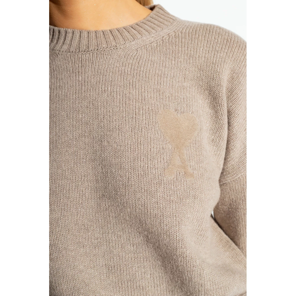 Beige CrewNeck -genser fra Ami Alexandre Mattiussi. Denne stilen er laget av ull, og inneholder ‘Ami de Coeur’ broderi på fronten og ribbet trims på kragen, bunnhemmen og mansjettene.