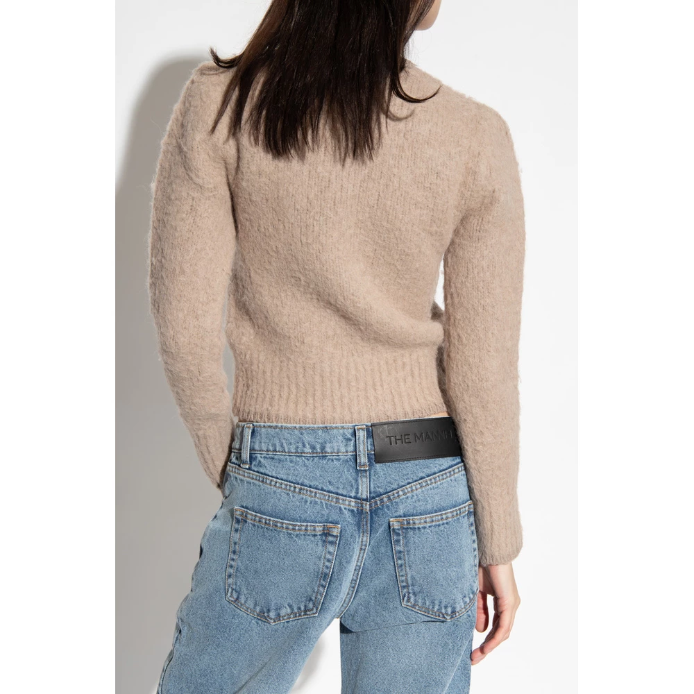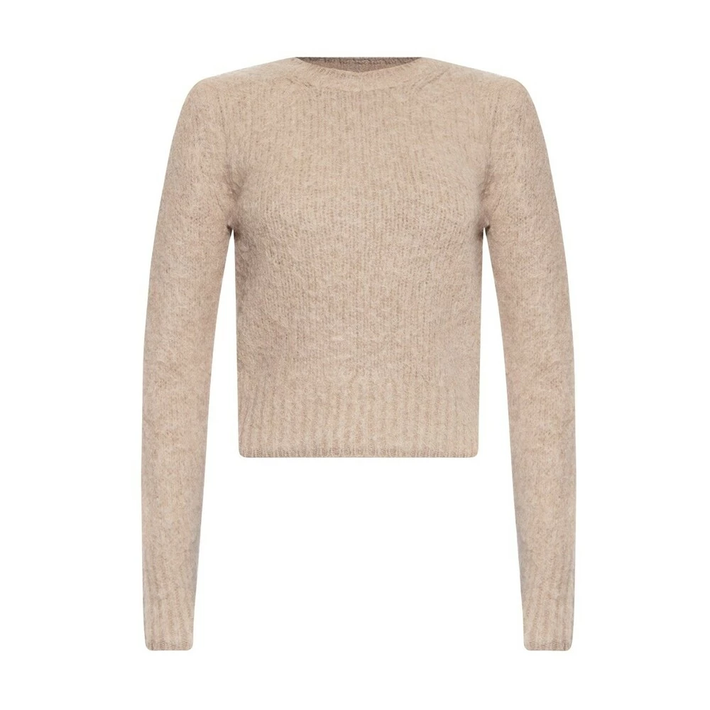 Beige CrewNeck -genser fra Ami Alexandre Mattiussi. Denne stilen er laget av en ull- og alpakka -blanding, og har en vanlig passform, lange ermer og ribbestrikk på kragen, bunnhemmen og mansjettene.