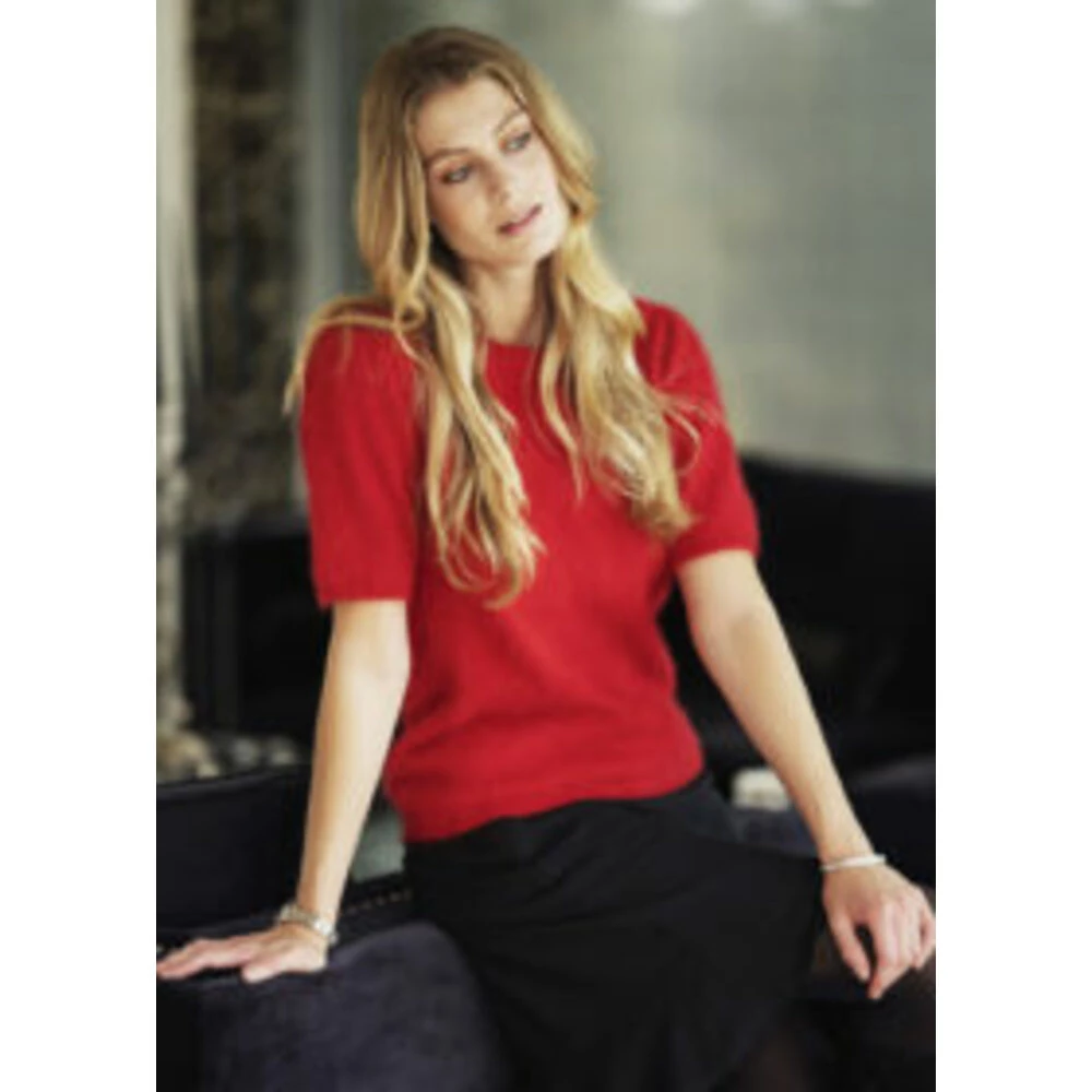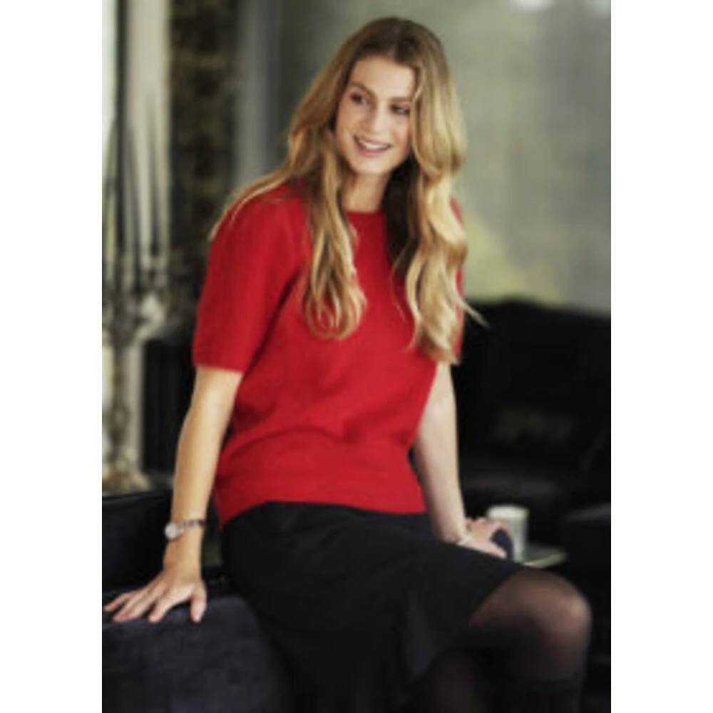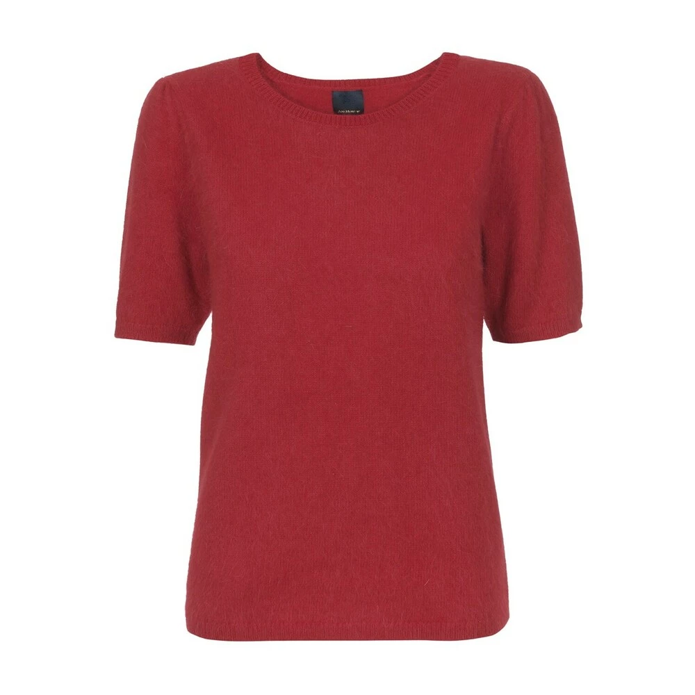 70% angora 30% nylon. Angora gir fra seg hår, så vær litt obs på hva du bruker det sammen med i starten!