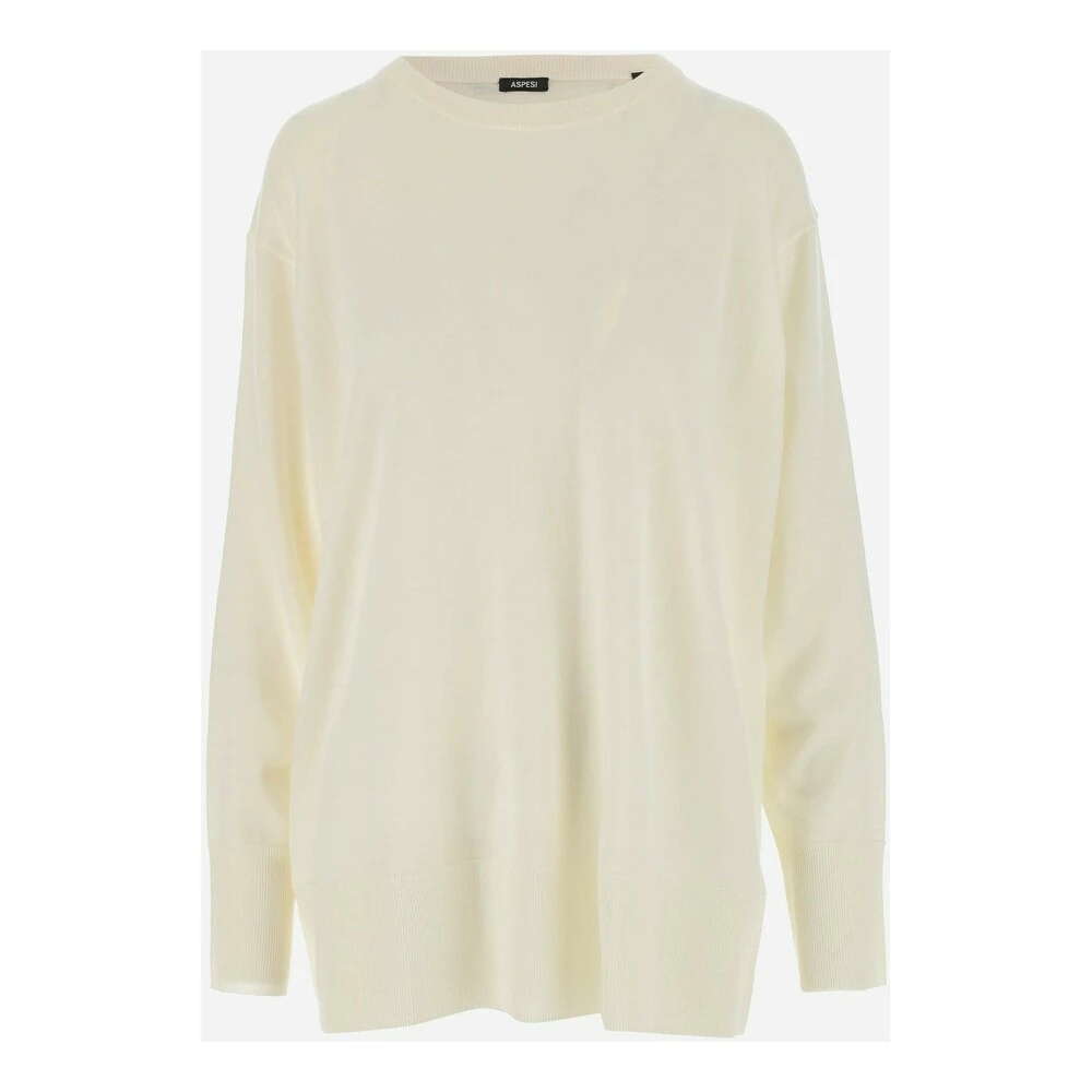 Pullover laget av lette jomfruelige ullgarn mannskapslange ermer høye hem, mansjetter og ribbet mannskaphals hvit laget i Kina