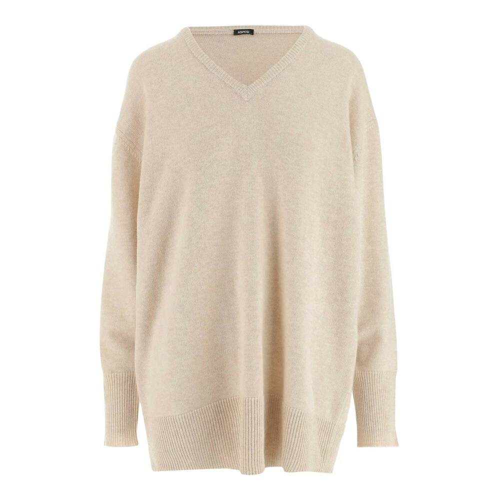 Pullovermade av ren ull V-hals lange ermer ribbet kanter løs passform beige laget i Italia-komposisjon: 100% ull pullovermade av ren ull V-hals lange ermer ribbestrød kanter løs passform laget i Italia-sammensetning: 100% ull