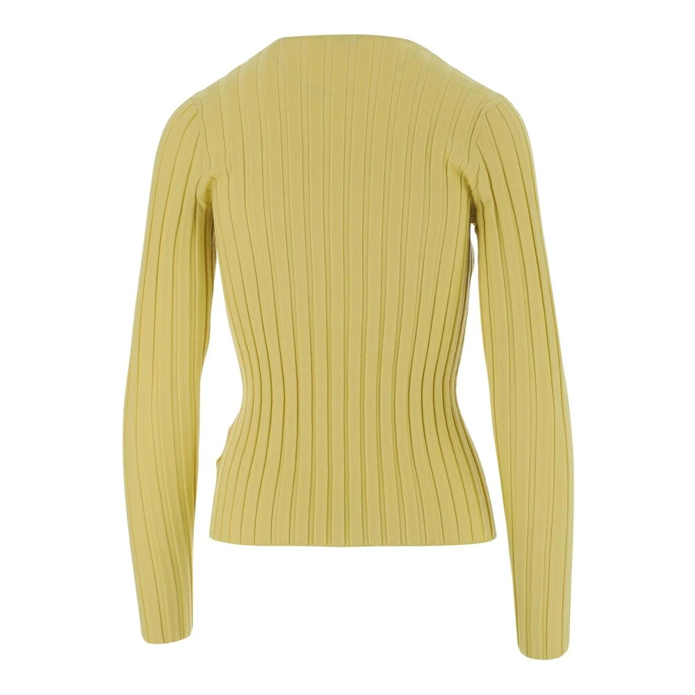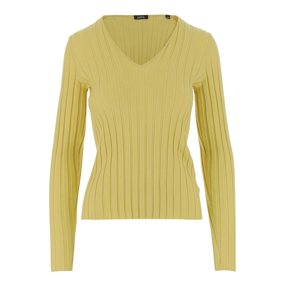Genser laget av strekkull V-hals ribbet design Lange ermer Slim Fit Yellow Made in China Composition: 97% Ull, 3% Elastane Genser laget av strekkull V-hals Ribbed Design Lange ermer Slim Fit Yellow Made in China Composition: 97% Wool , 3% Elastane