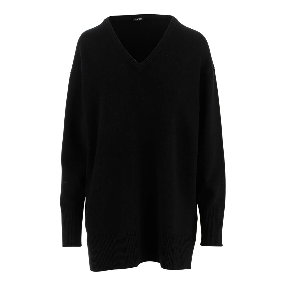 Pullover laget av ren ull V-hals lange ermer ribbet kanter løs passform svart laget i Italia komposisjon: 100% ull pullover laget av ren ull v-hals lange ermer ribbet kanter løs passform svart laget i Italia komposisjon: 100% ull