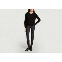 Svart angora og polyamid netting genser, fasongsydd, lang arm, rund hals, ribbet utfĂžrelser.