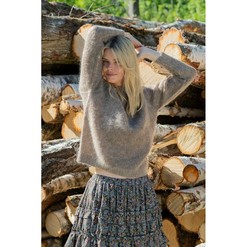 Navn: Arnie Says Maddox sweater Farge: Brun/Brown Melange Beskrivelse: Maddox, er tilbake. I en nydelig brun farge. Denne genseren holder seg fin sesong etter sesong og blir raskt en favoritt Materiale: 30% ull, 30% Mohair, 40% Nylon Vaskes i maskin på lav temperatur, 30 grader, ullprogram. Ingen tørketromling, tørkes flatt.