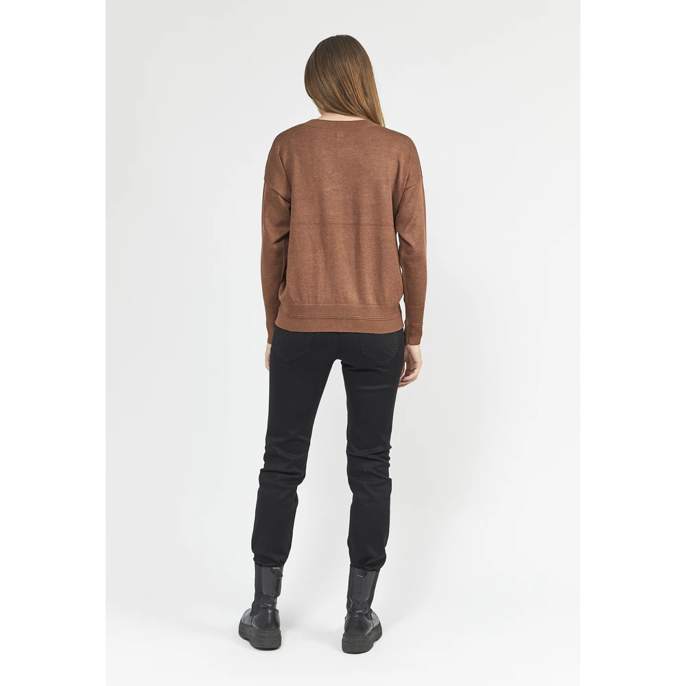 Strikket genser fra Jensen i Marineblå farge. Genseren har rund hals, lange ermer med vrangbord og vrangbord i nederkant. Romslig i størrelsen. Innhold: 70% Viskose, 30% Polyamid. Vask: 30*C