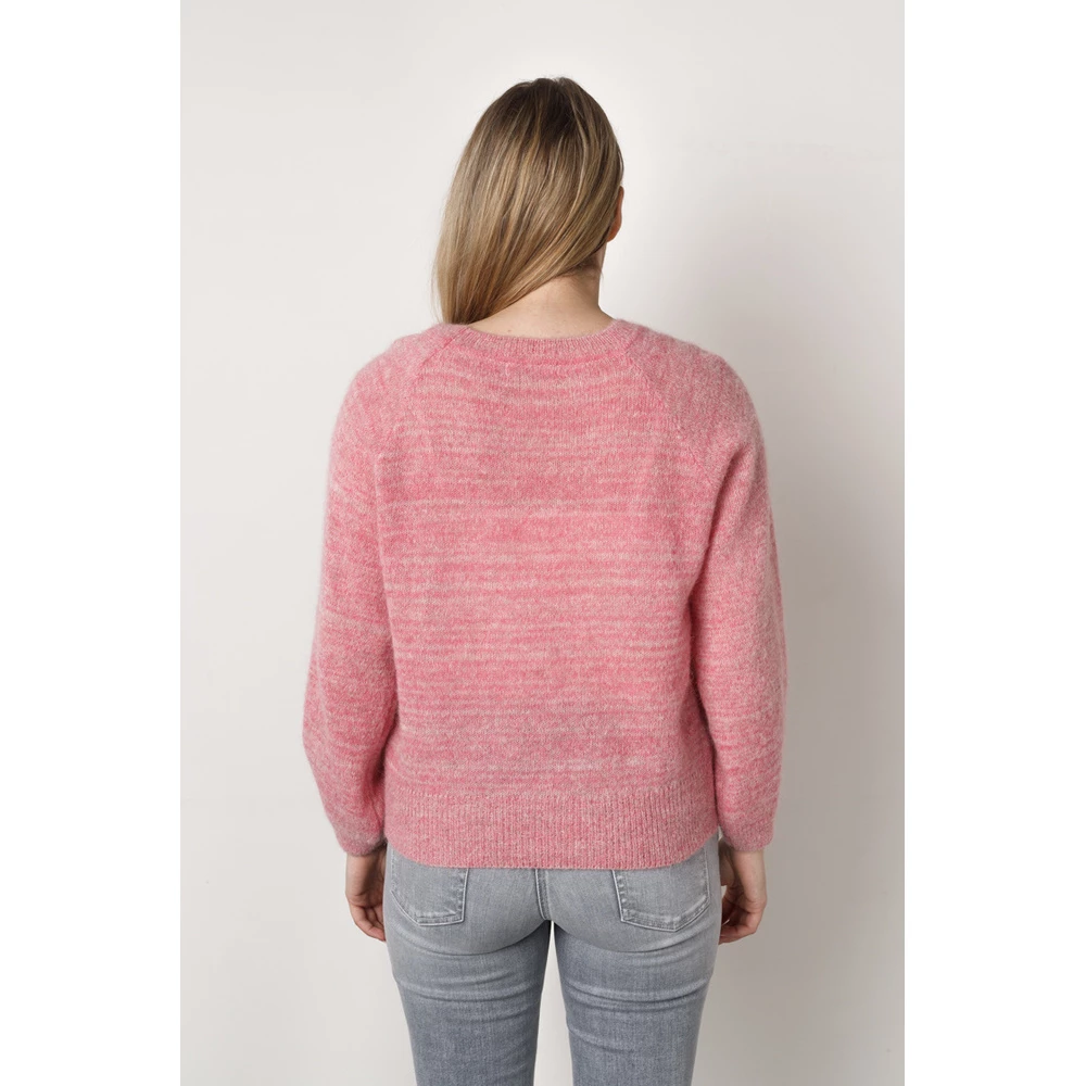 Bybar Pullover. Denne pullover i en rosa blandet vevd struktur har en svært lukket, rund hals og en litt utdatert hylse. Pullover har en løs passform. Unik mote bruker nederlandske dimensjoner. Størrelsene på skandinaviske og tyske merker er de samme som de nederlandske dimensjonene. Dimensjoner: EN XS (34), S (36), M (38), L (40), XL (42) Materiale: 62% Alpaca, 38% Nylon Fit: Denne modellen har en bred passform.