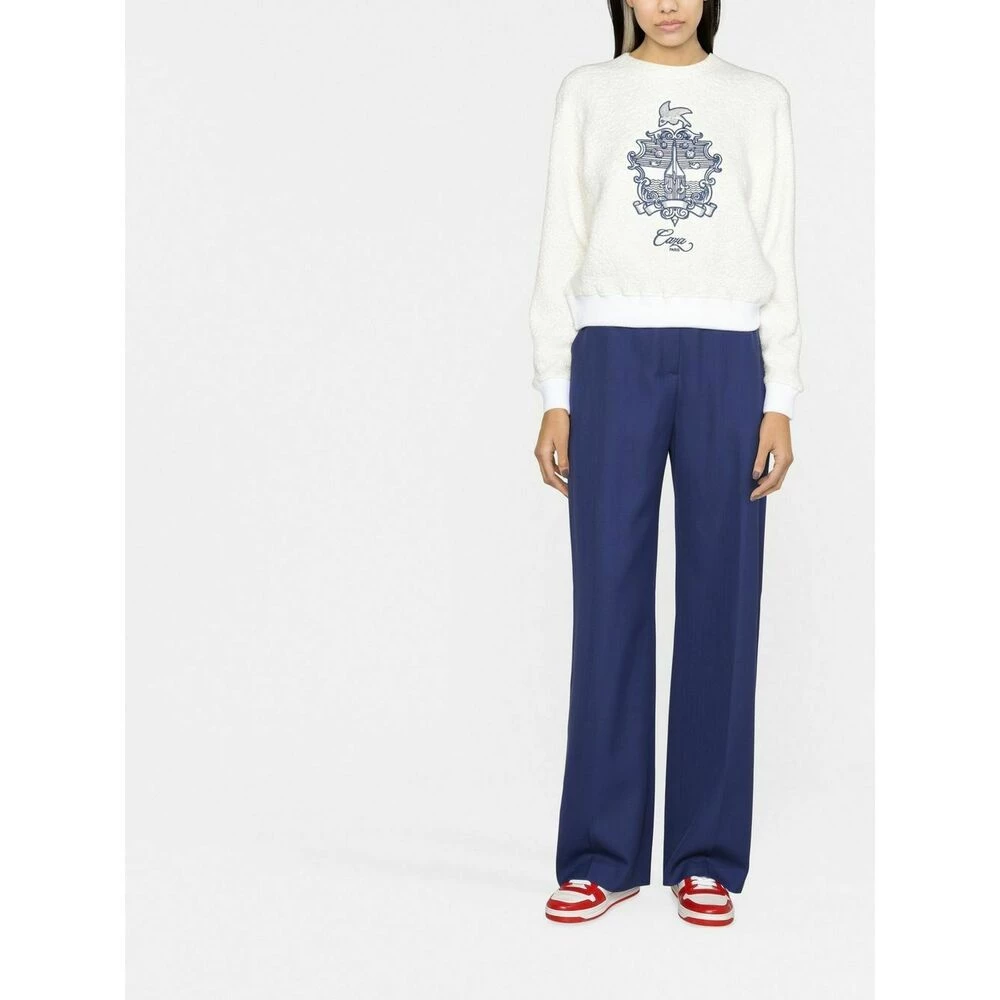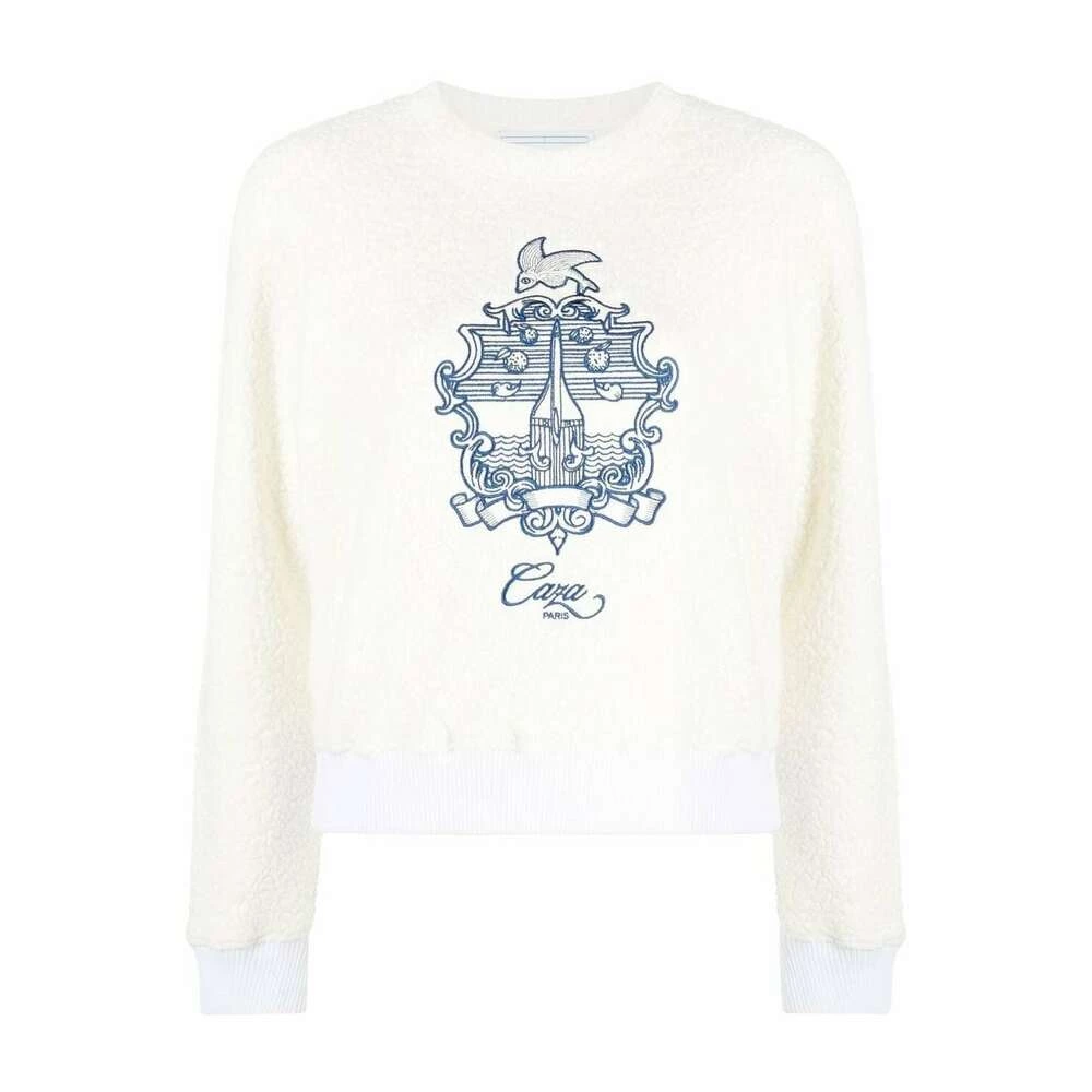 Casablanca Gensere Cloud White Wool-Cashmere Blanding Sweatshirt fra Casablanca med ribbet detaljering, logo-trykk foran, runde nakke, lange ermer og rett hem.