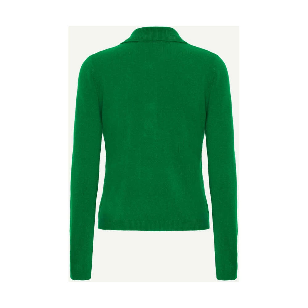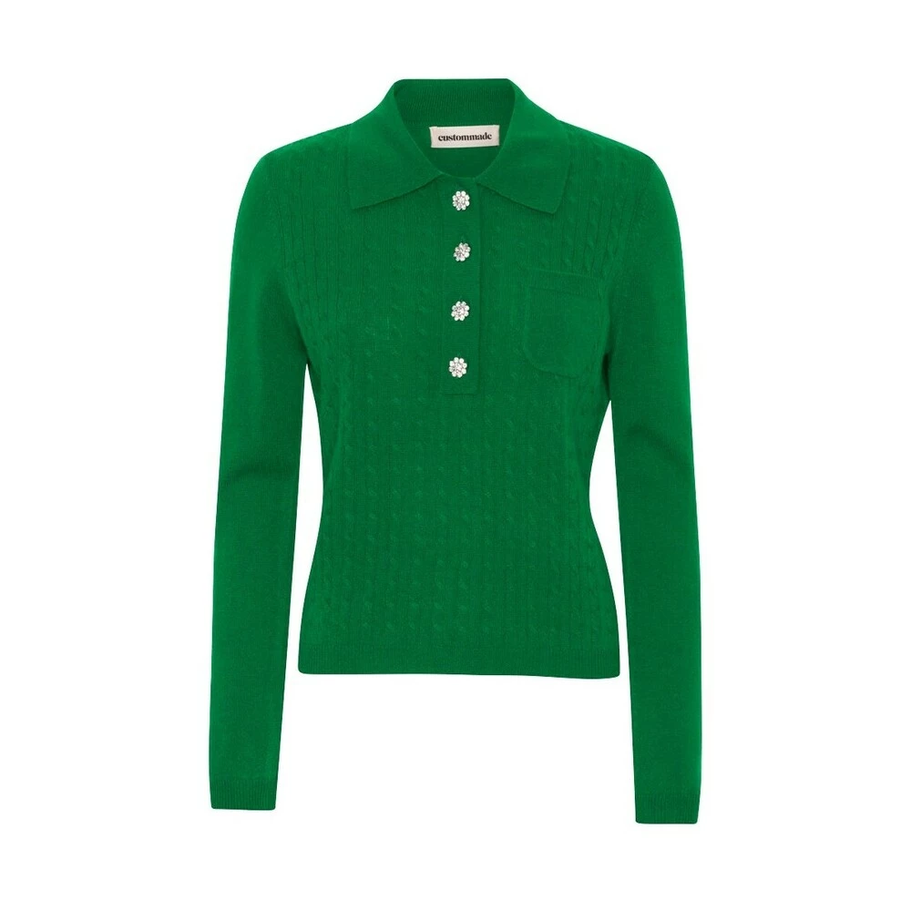 Green `Vania Cable` topp fra Custommade. Denne stilen er laget av kashmir med en formpassende silhuett, og har en polo-krage, en plakett med blanke knapper, en glidekstrøllomme og lange ermer.