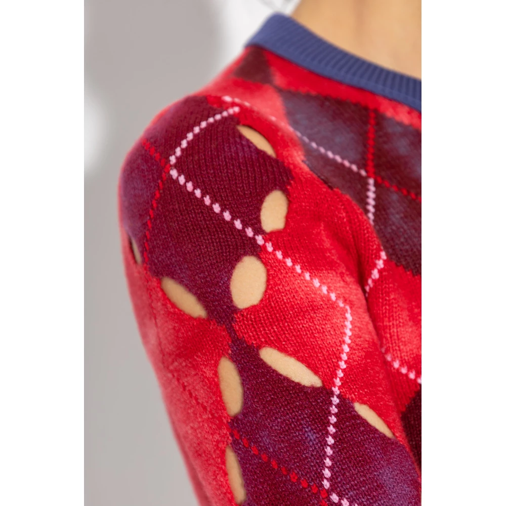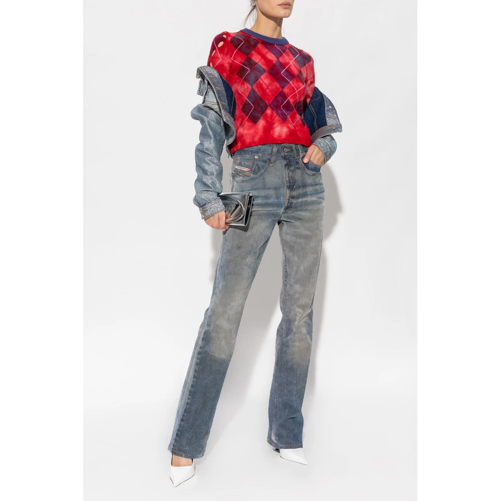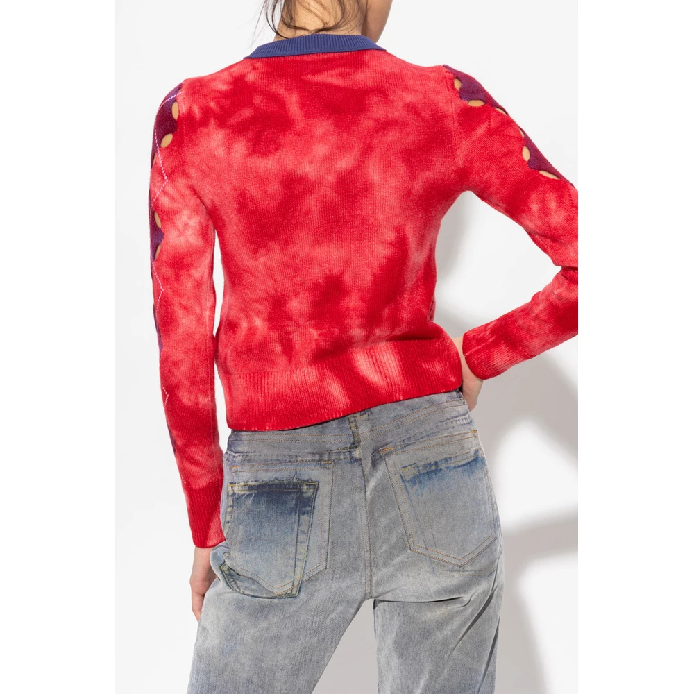 Rød, blå og hvit ‘m-agda’ crewneck-genser fra diesel. Denne stilen er laget av ull, og viser et geometrisk mønster og ribbet trimmer på kantene.