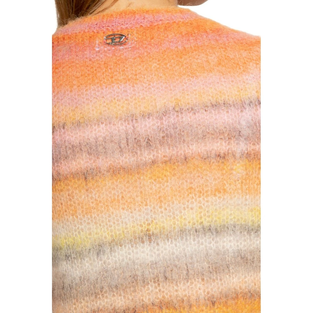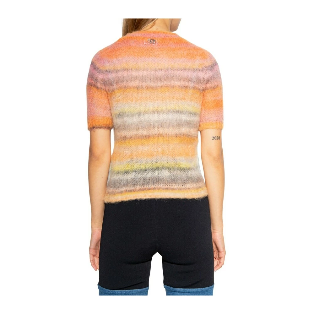 Multikolorert ‘M-Icaela’ genser med korte ermer fra diesel. Dette plagget er laget av en mohair- og alpakka -blanding, og berikes av et stripemønster og ribbet pynt ved mannskapshalsen, hem og mansjetter.