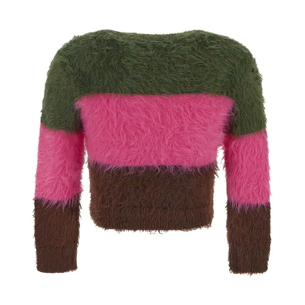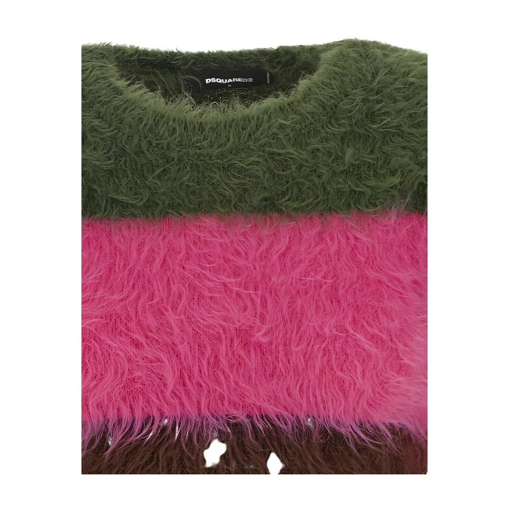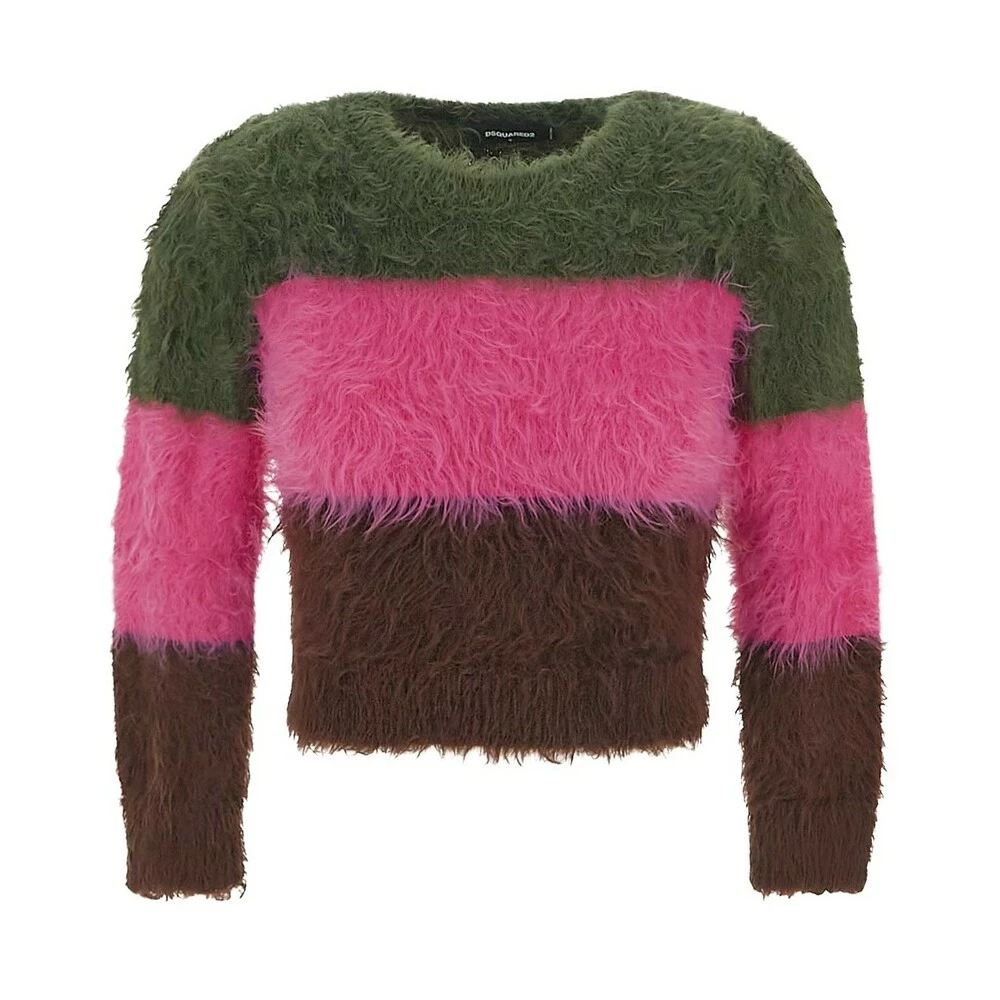 Grønn, rosa og brun montert beskåret genser med en rund nakke og lange ermer fra DSquared2.