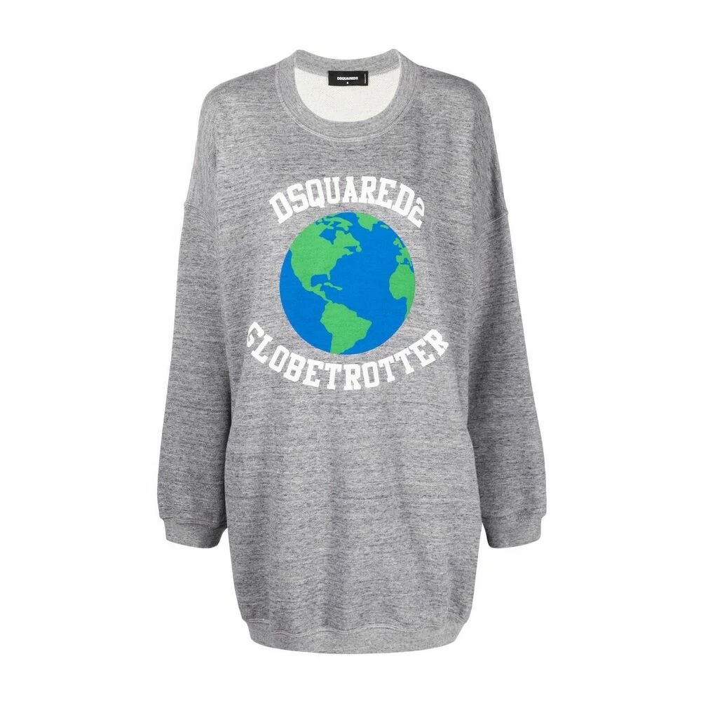 Gray Overize CrewNeck Sweatshirt fra DSquared2. Denne lange ermet designet er laget av bomull, og har en blå, grønn og hvit jordprint, logodetaljer, to glidelommer og ribbet pynt ved nakken, hem og mansjetter.