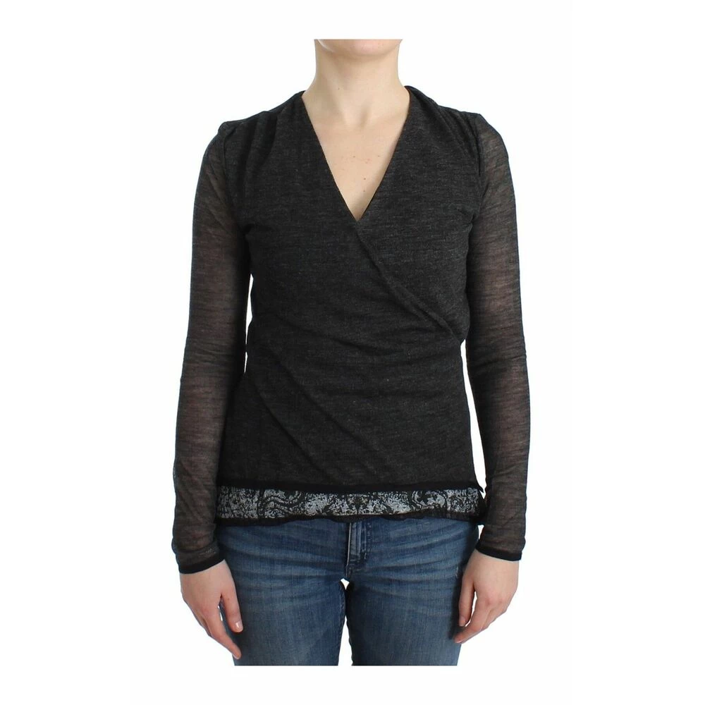 Ermanno Scervino genser nydelig helt nytt med tagger, 100% autentisk Ermanno Scervino grå ullblanding genser. Materiale: 50% rayon, 23% ull, 27% polyester Farge: grå modell: dyp v-hals logo detaljer laget i Italia 50% rayon, 23% ull, 27% polyester