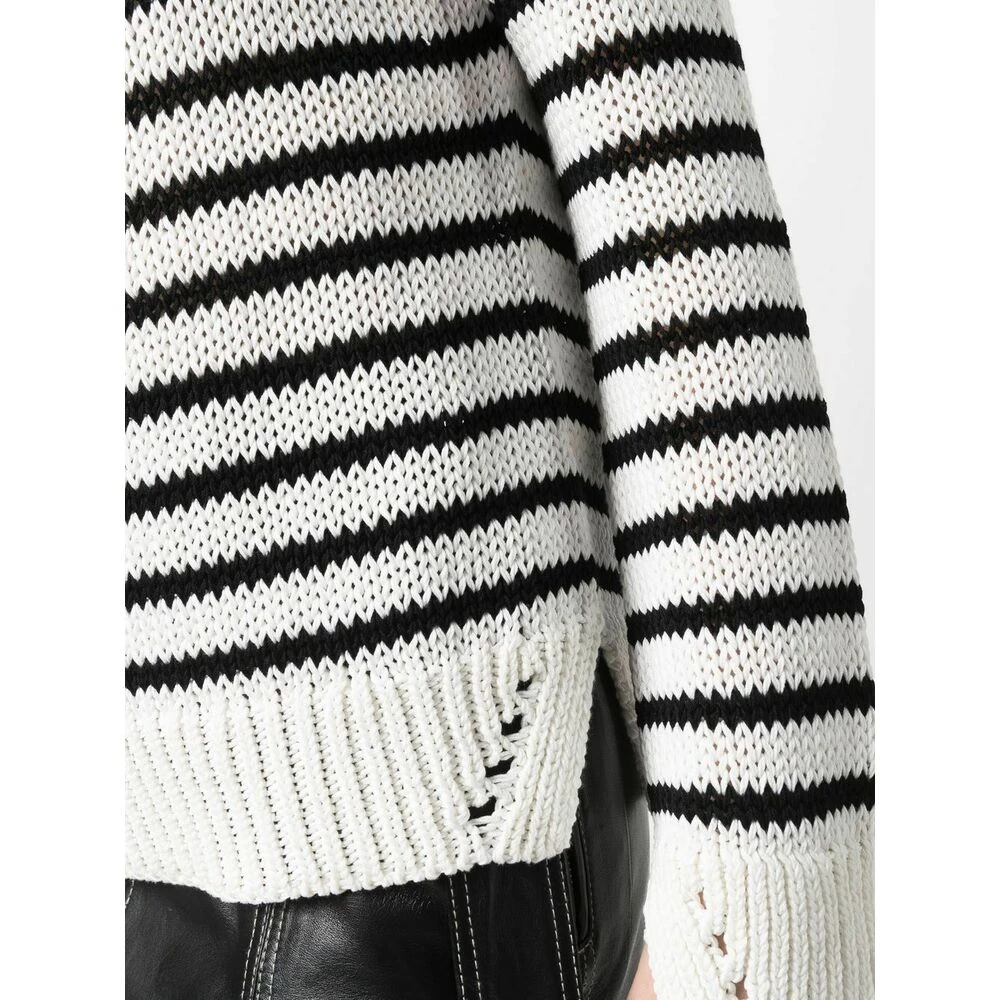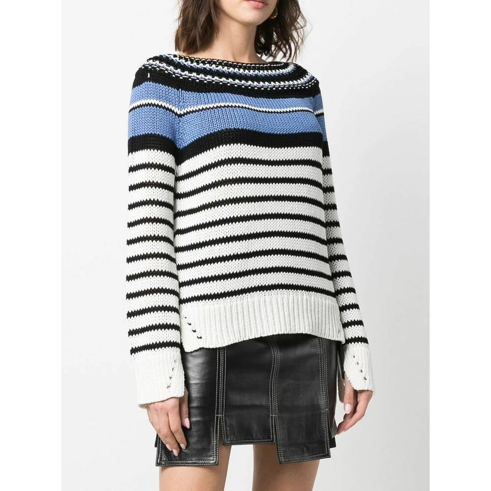 Ermanno Ermanno Scervino-gensere White/Black/Blue Cotton Striped Ribbed-Knit Jumper fra Ermanno Ermanno med ribbet strikket, horisontalt stripe mønster, båthals, lange ermer og ribbet trim.