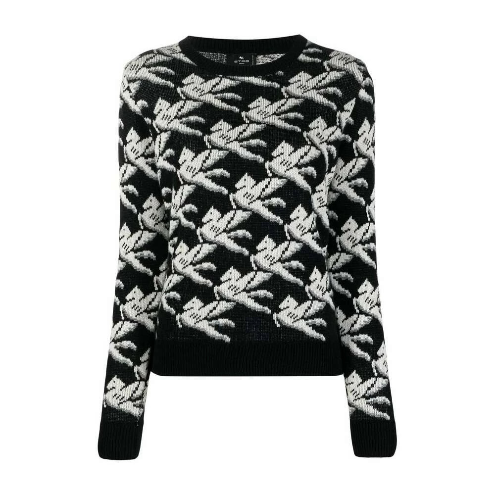 Etro Sweaters Black Intarsia-strikkede motivhopper fra Etro med svart, ull, mønstret intarsia strikk, rund hals og lange ermer.