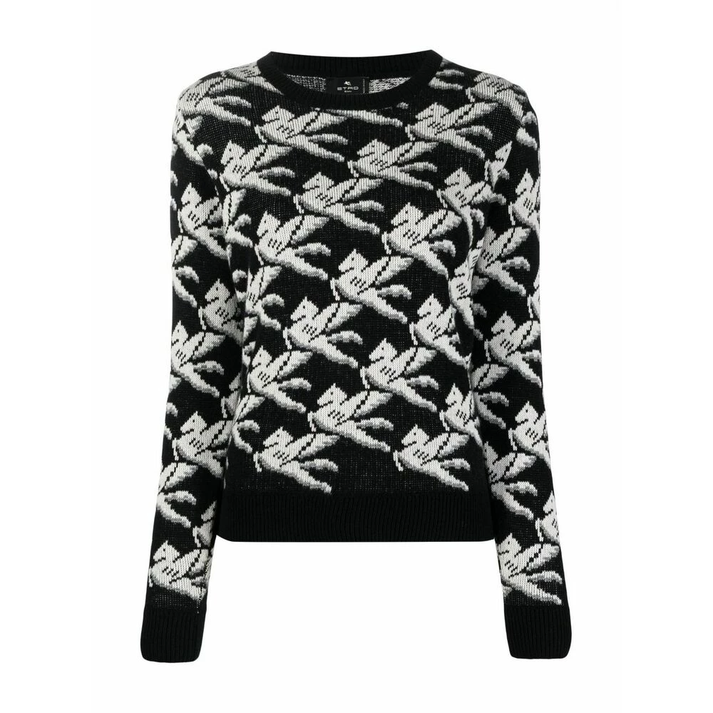 Etro Sweaters Black Intarsia-strikkede motivhopper fra Etro med svart, ull, mønstret intarsia strikk, rund hals og lange ermer.