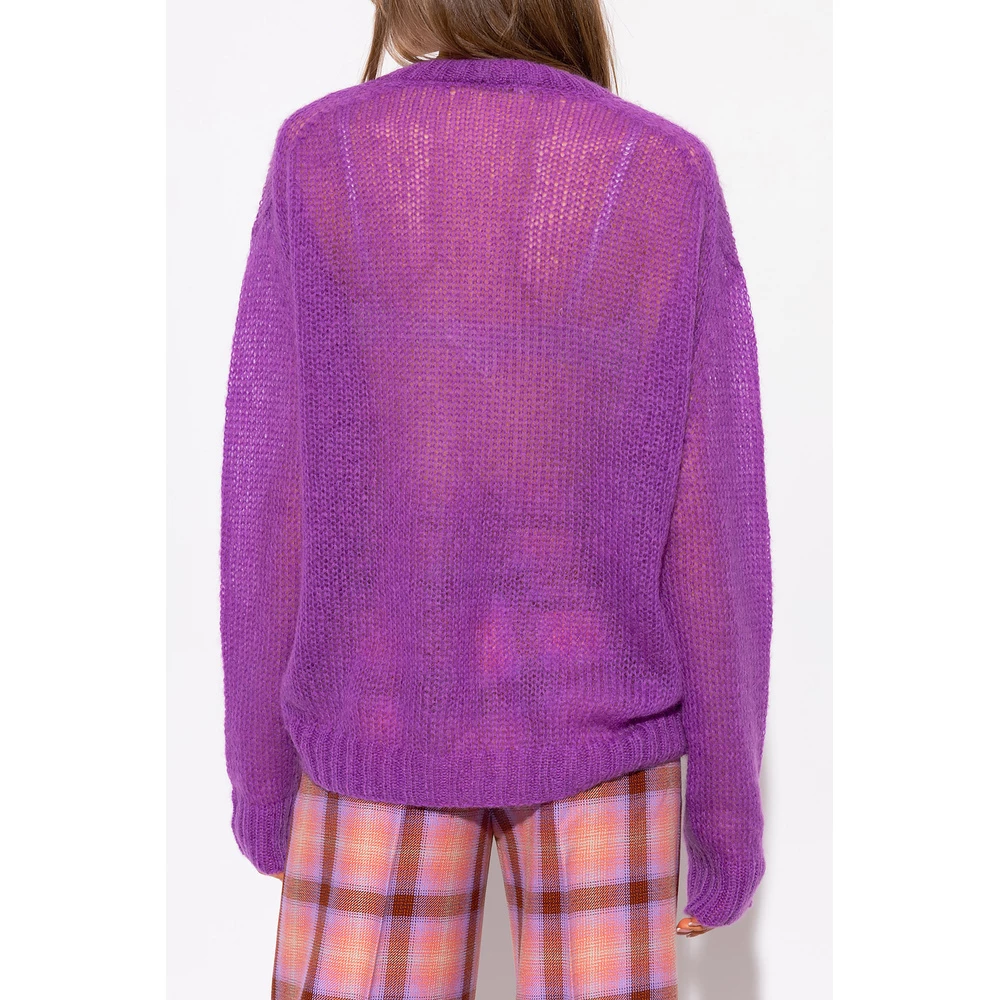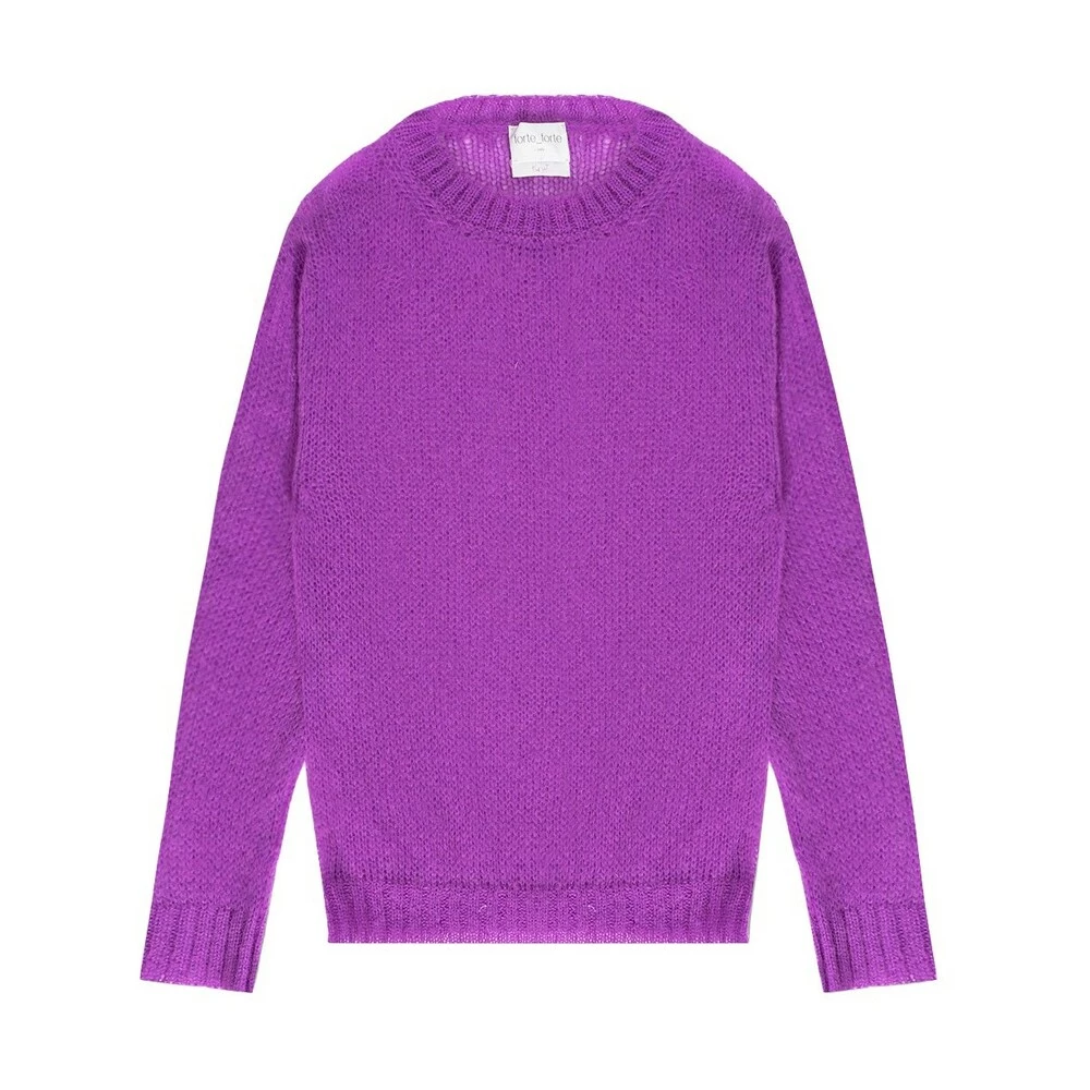 Purple crewneck genser fra forte forte. Denne stilen er laget av en mohair og ullblanding med en avslappet passform, og har en semi-sheer-finish og ribbestrikkede trimmer på kragen, bunnhemmen og mansjettene.