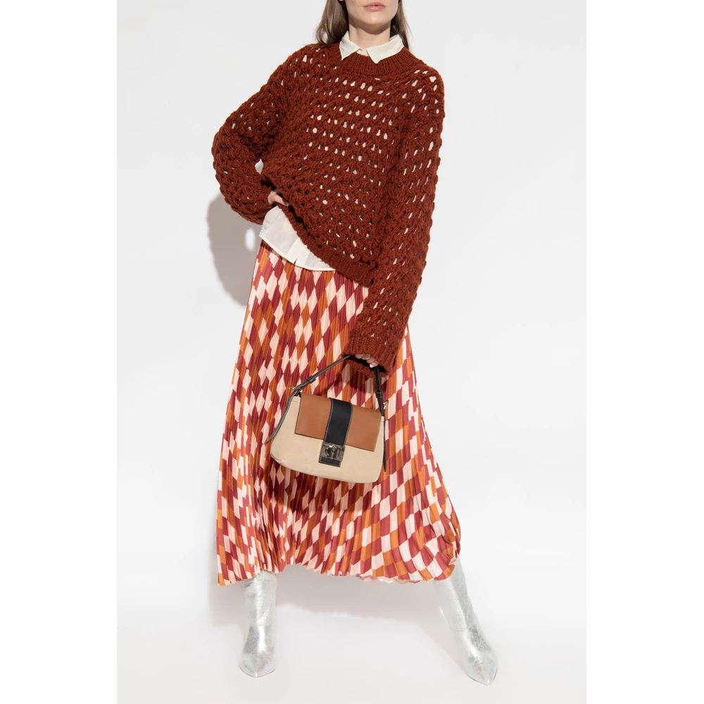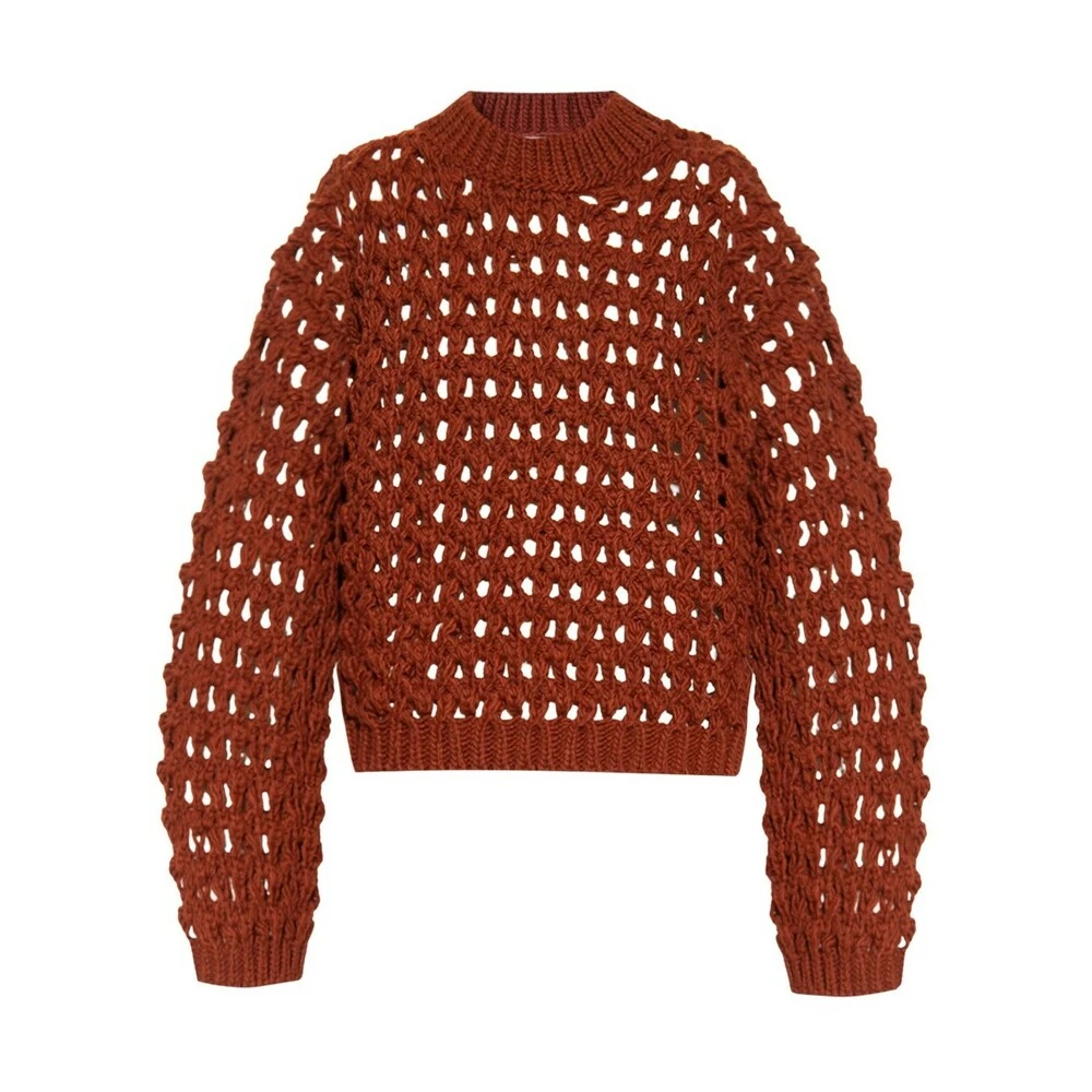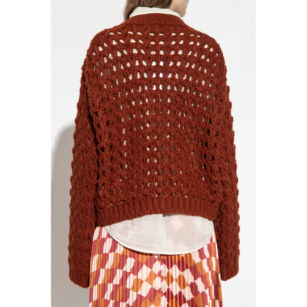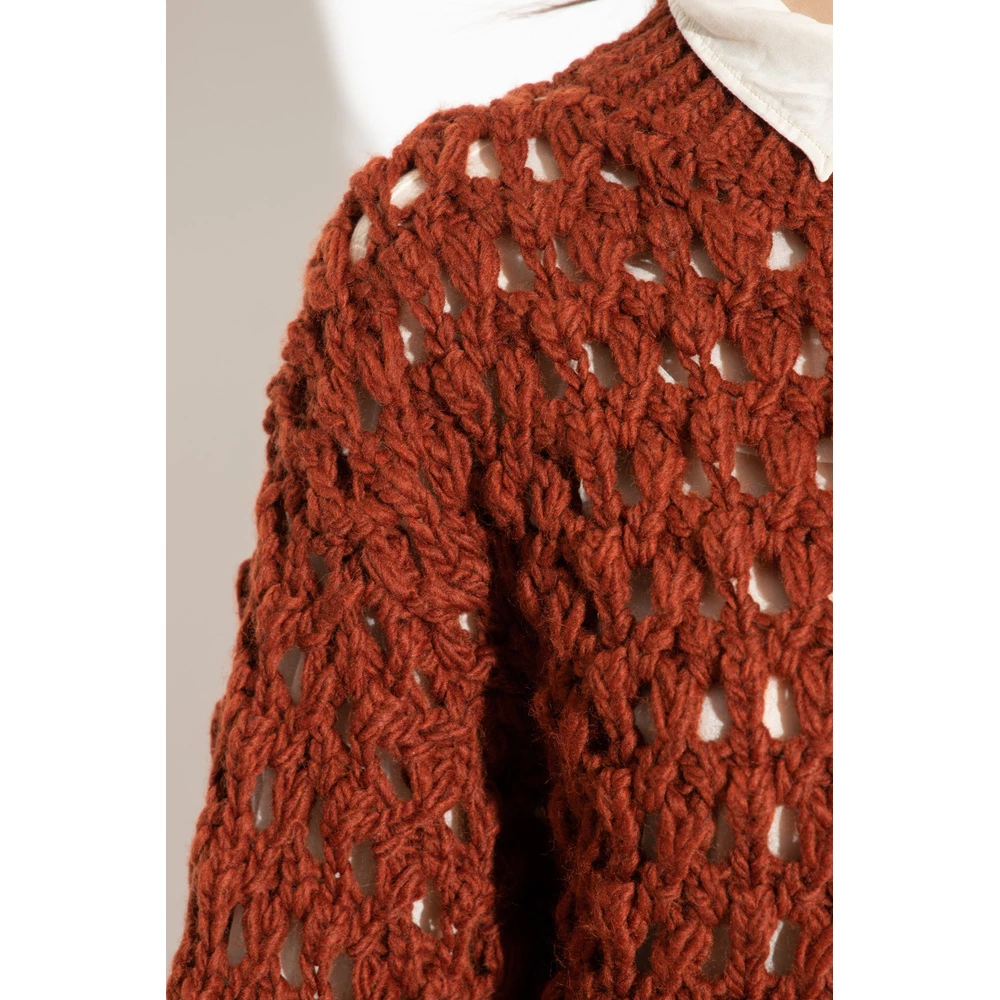 Mørkebrun genser med et åpent strikk, rund hals og ribbet kanter fra Forte Forte.