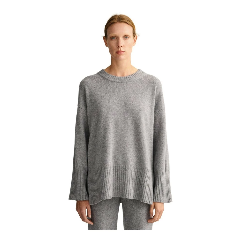 Navn: GANT Lounge C-Neck Sweater Farge: Grå/ Grey mel Beskrivelse: Denne genseren med rund hals er laget av en myk ull- og kashmirblanding, og har en forhøyet tilnærming til loungewear. Den er strikket med høy vrangbordsdetaljer ved de vide ermene og høy splitt nederst. Style med de matchende loungebuksene for en komplett, koselig look. Materiale: Ull 90%, Cashmere 10%