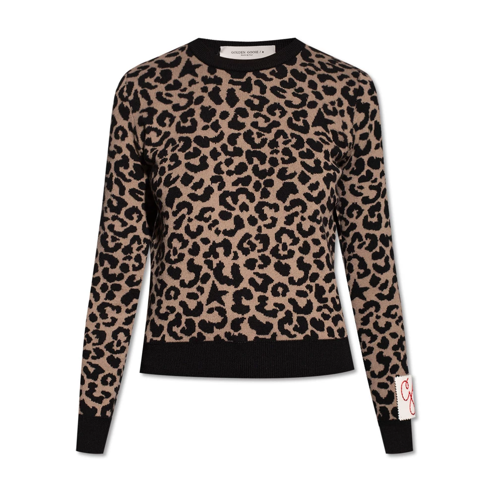 Beige og Black CrewNeck -genser fra Golden Goose. Denne stilen er laget av bomull og viser et dyremotiv og lange ermer.