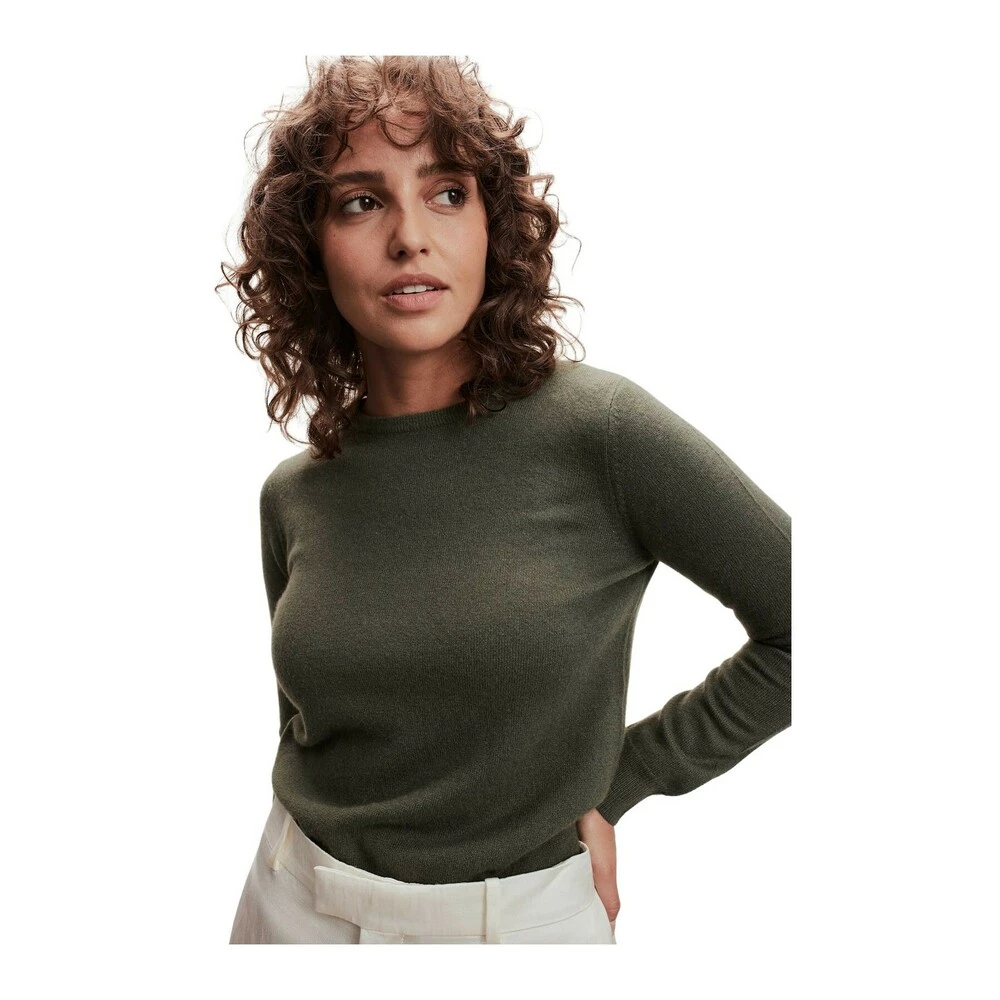 Navn: Davida Basic O-neck Sweater Farge: Army grønn Beskrivelse: Navnet snakker nesten for seg selv. En basisgenser som alle burde ha i garderoben. Akkurat like fin til jeans som til dressbukse eller skjørt. En genser du alltid føler deg fint kledd i, uansett hva du kombinerer den med. Kroppsnær passform som oppleves som liten i størrelsen, så gå gjerne opp en størrelse. Både ermeåpningene og nederkanten er ribbestrikket, mens halsåpningen har en tynnere ribbekant. Kroppsnær og liten i størrelsen. Materiale: 100 % kasjmir