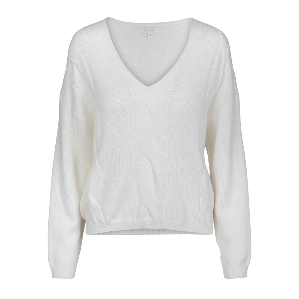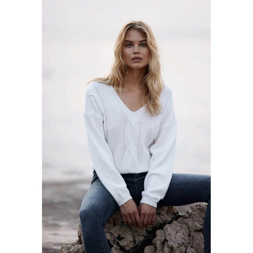 Deilig strikket genser med flettemønster. Genseren har v-hals og lange ermer. Kort i modellen. Kvalitet: 100% ull Ullvask