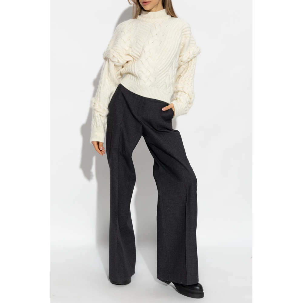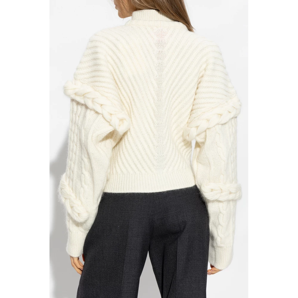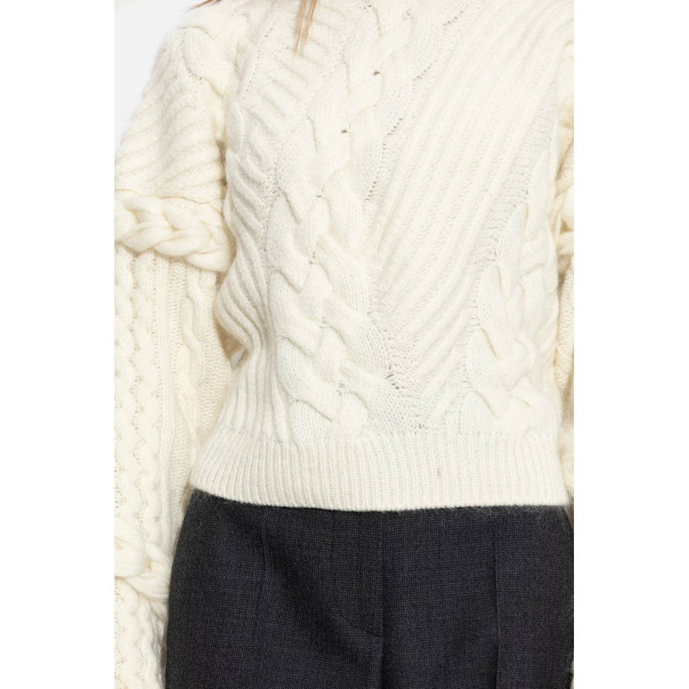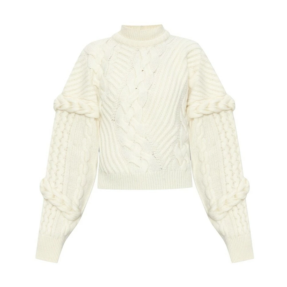 Kremgenser fra Iceberg. Denne stilen er laget av ull med en særegen strikket, og har en stående krage, lange ermer og ribbede trimmer på bunnen og mansjettene.