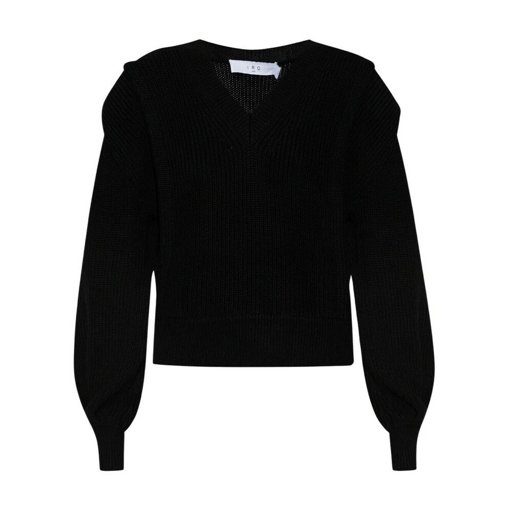 Svart genser fra IRO. Dette plagget er laget av bomull, og har ribbet trimmer ved V-halsen, hem og mansjetter.