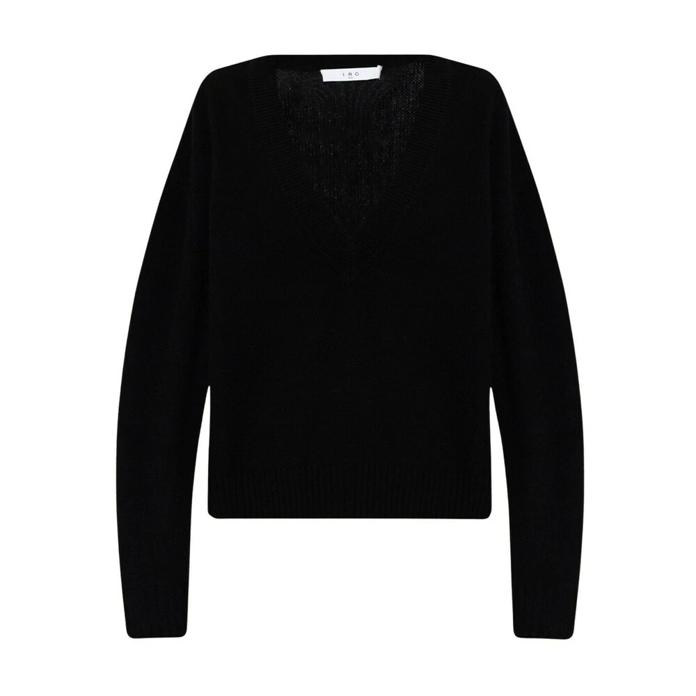 Svart âLilweenâ V-halsgenser fra IRO. Denne stilen er laget av kashmir, og har en avslappet silhuett, lange ermer og ribbestrikkede trimmer pĂ„ kantene.