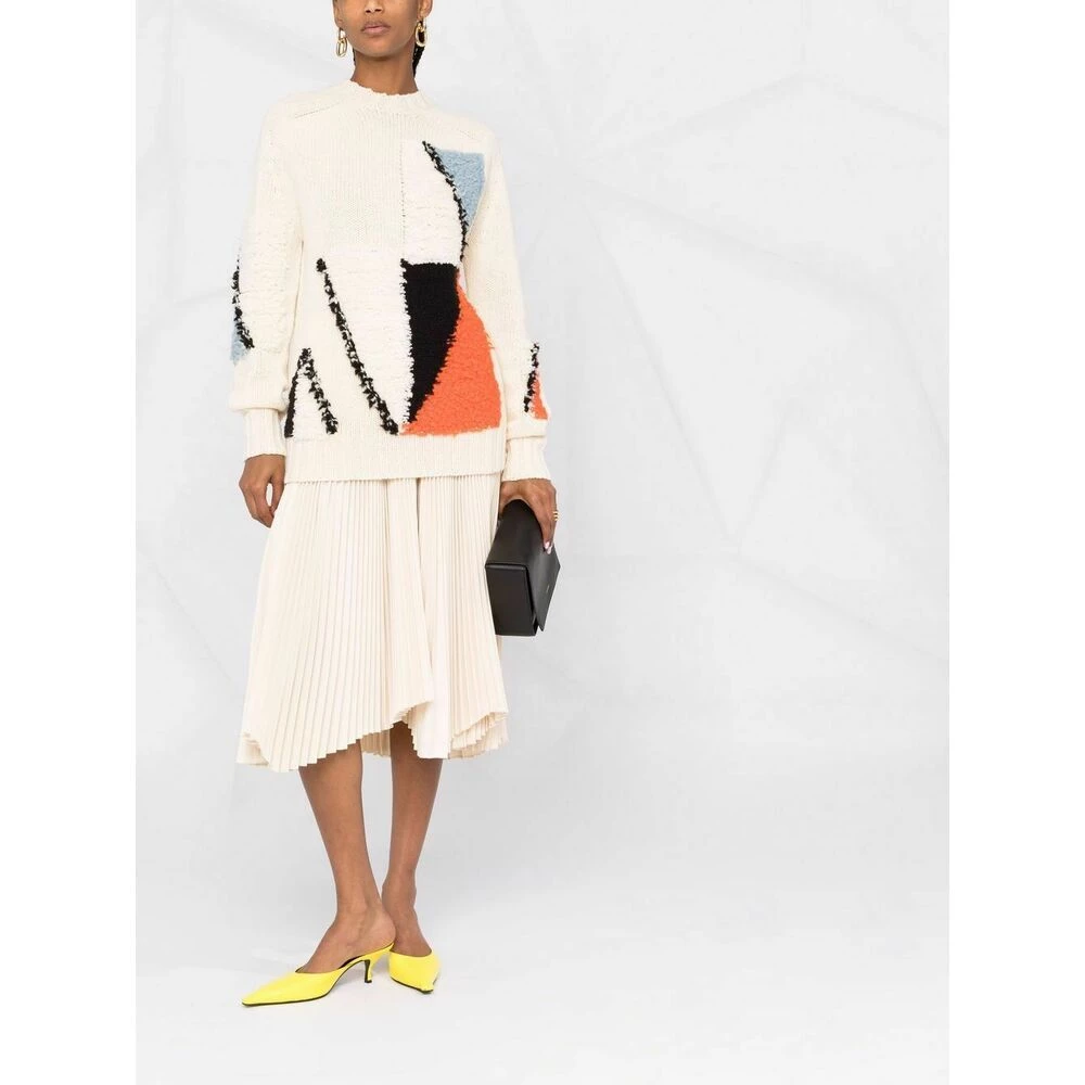 Jil Sander Sweaters Red Cream Wol Color-Block Wool Jumper fra Jil Sander med tykke ribbet strikk, fargeblokkdesign, rund nakke og lange ermer.