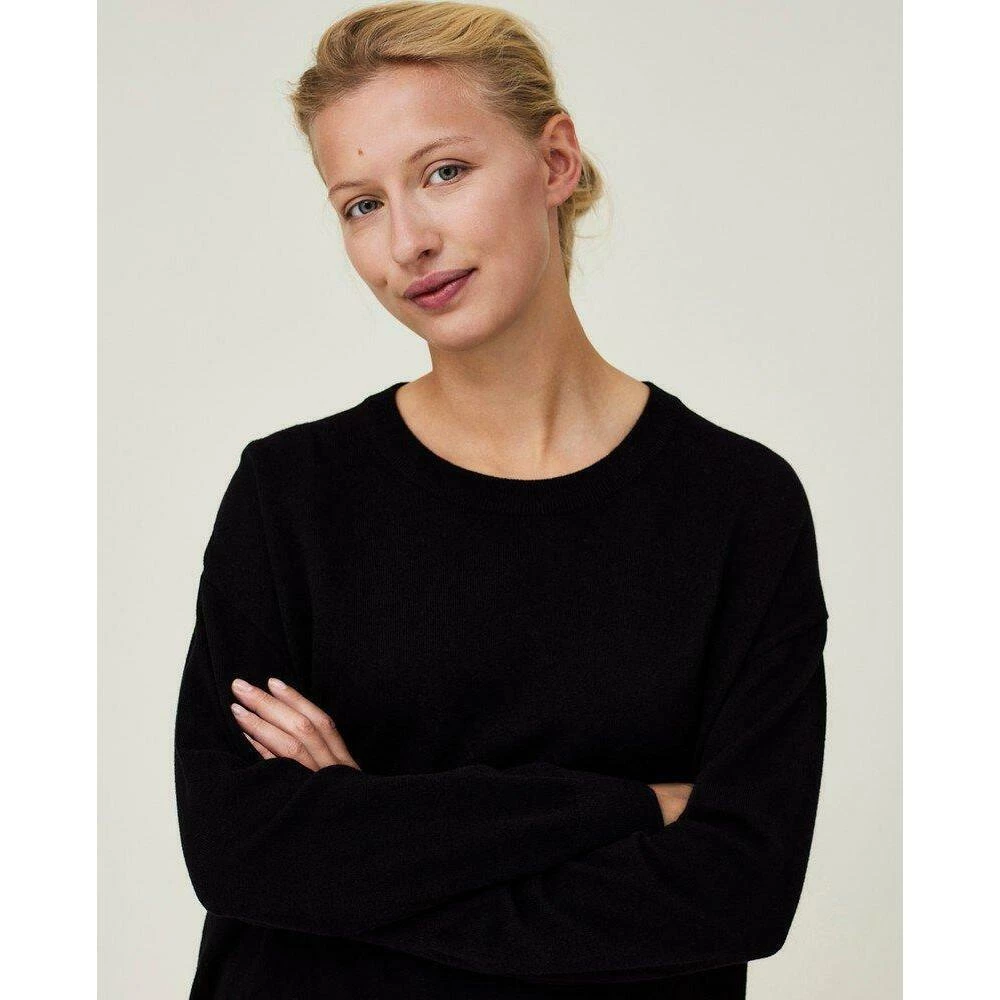 Genser i en myk blanding av organisk bomull og kashmir med ribbete detaljer rundt utringning og underkant. Den glatte strikkede genseren er kuttet i en uformell passform med Lexington -flagget i siden. Rundt hals og underkant. Den glatte strikkede genseren er kuttet i en uformell passform med Lexington -flagget pÄ siden.