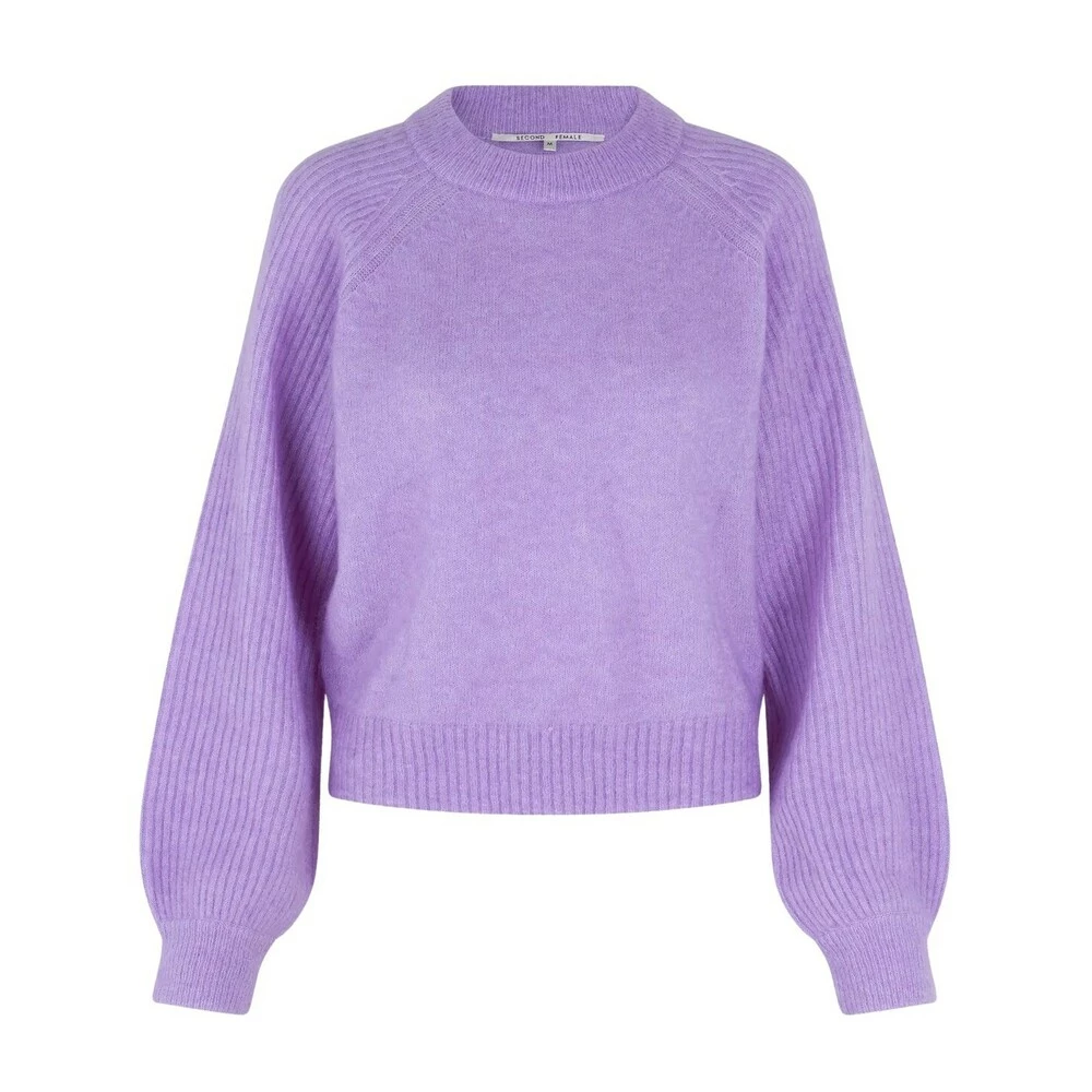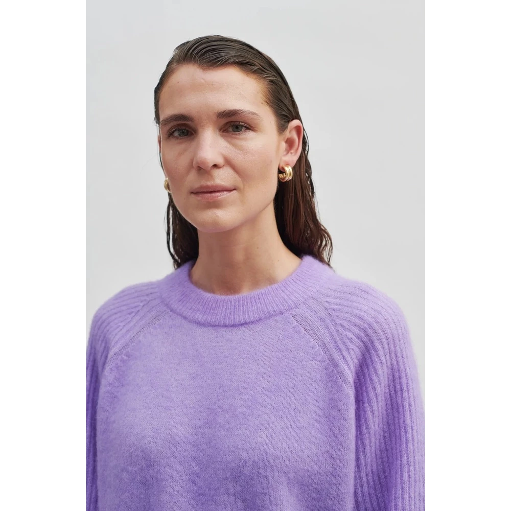 Second Female – Brookline Knit O-Neck Strikkegenser i en myk og elastisk mohair-ullblanding med lett luftig tekstur. Modellen er designet med kontrastribbede ermer og doble mansjetter. Rund hals og raglanermer. Rett til noe løstsittende i fasongen. 34 % Mohair 34% Ull 27% Polyamid 5% Elastan