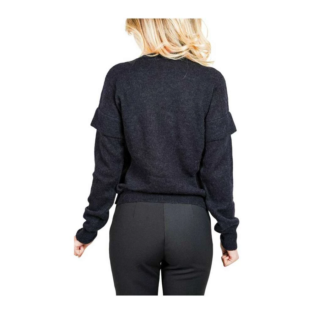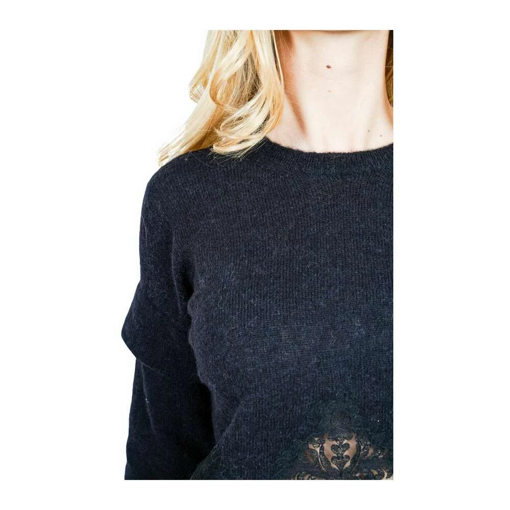 Manila Grace Sweaters Black Edeldetaljer for denne genseren. Genser i mykt blandingsgarn med kontrasterende profiler. Vanlig krage, lange ermer, normal passform. Perfekt til et skjørt eller å kombineres med ensfargede bukser for å gi den ekstra touchen. Den har makraméblondedetalj foran.