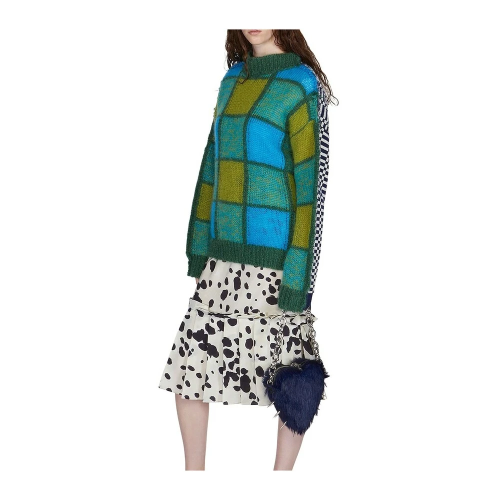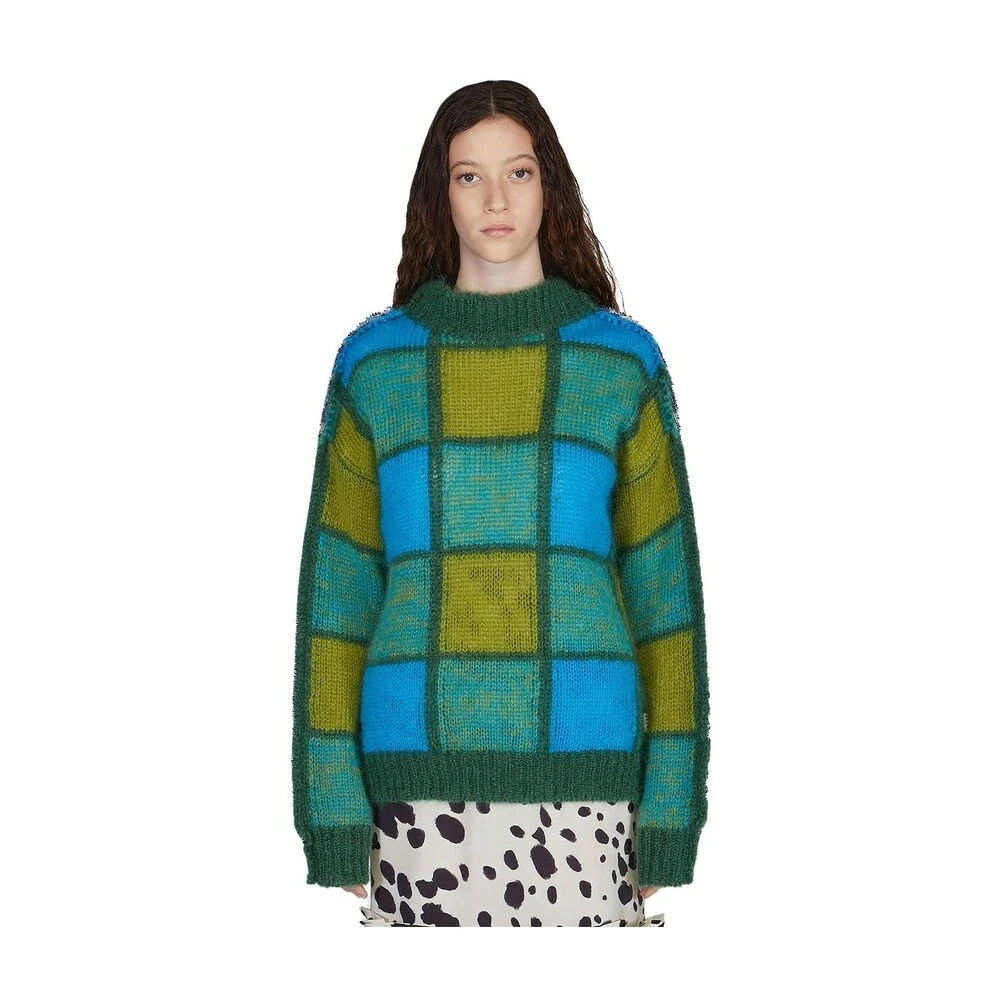 Flerfarget genser fra Marni. Denne runde nakkedesignet er dekorert med et geometrisk mĂžnster, og har lange ermer og sidespalte.