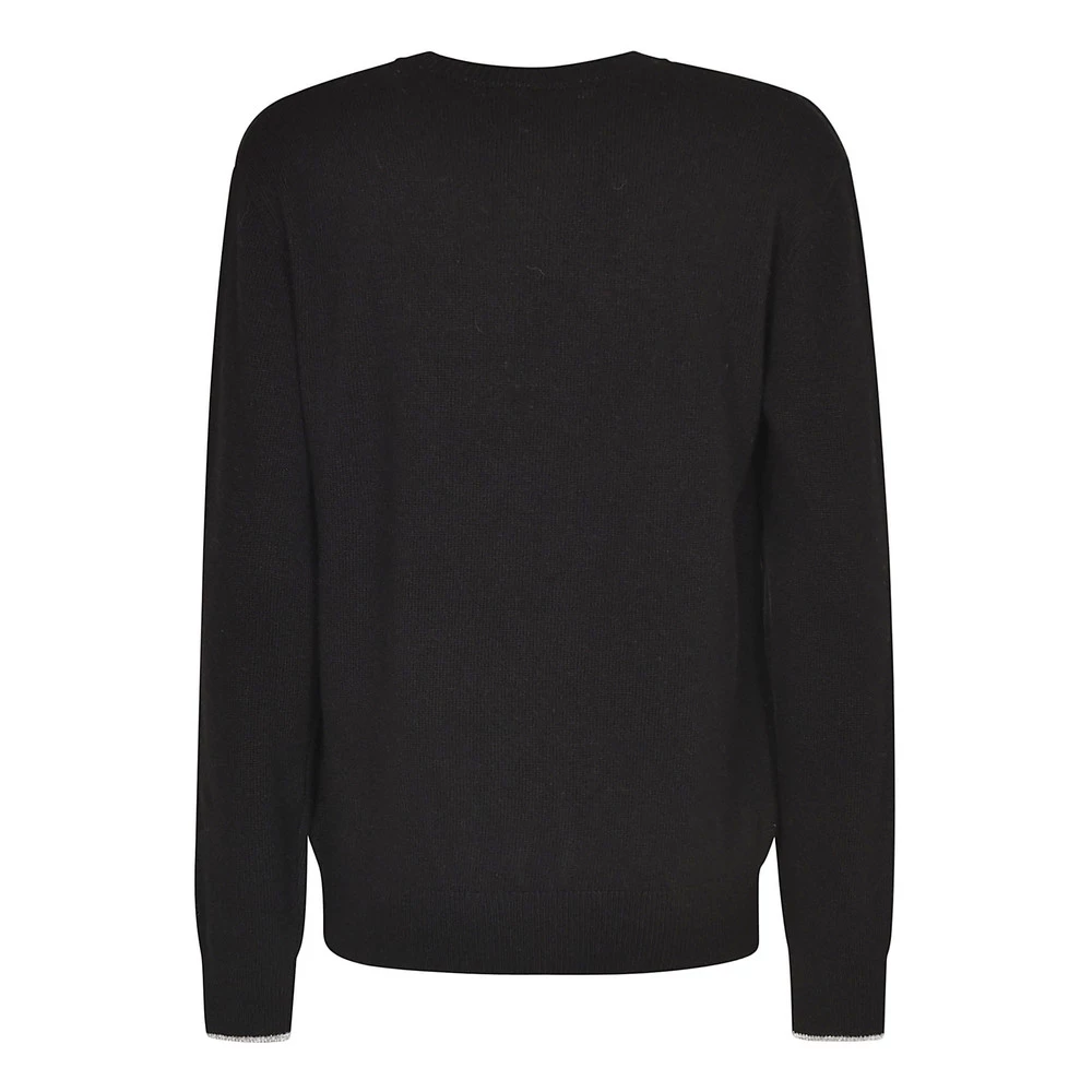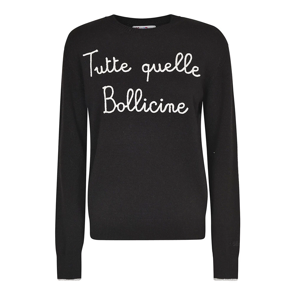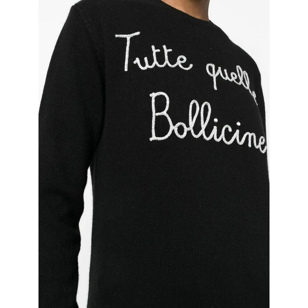 MC2 Saint Barth-gensere Black Brodered Crew-Neck strikket genser fra MC2 Saint Barth med svart/hvitt, ull-kashmere-blanding, strikket konstruksjon, brodert design, mannskapshals, lange ermer og rett hem.