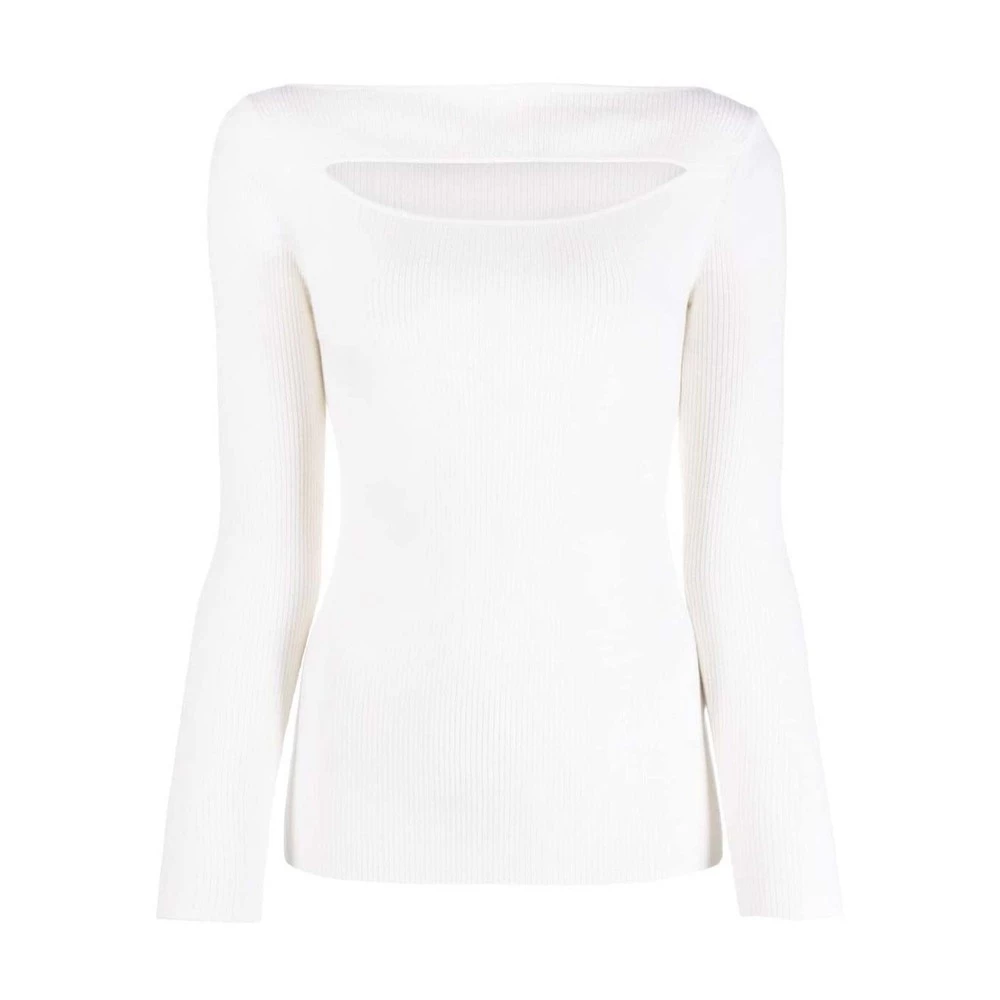 Parosh gensere hvit bÄthals lange ermer strikket konstruksjon utskÄret detalj Modellen har pÄ seg stÞrrelse s 100% ull laget i Kina