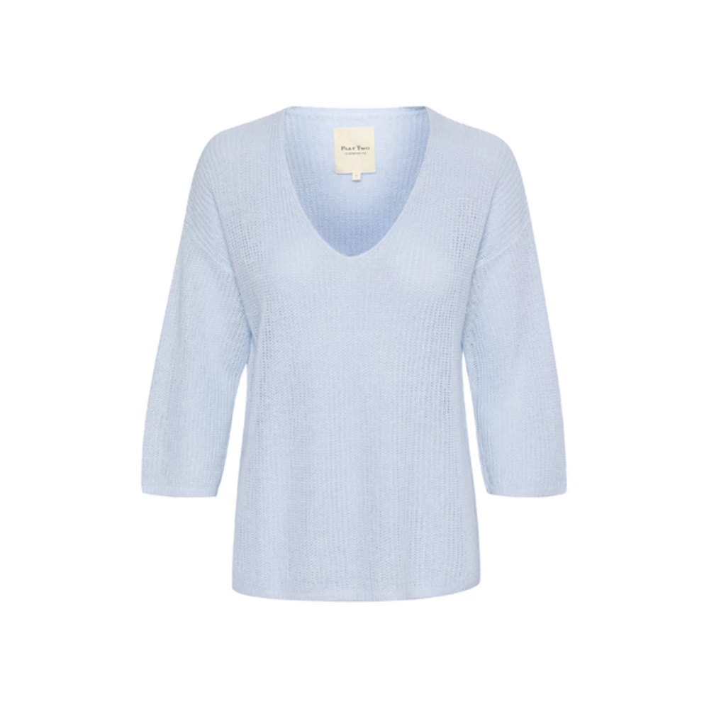 Netrona Pullover er en deilig, grovstrikket lingenser fra Part Two. Finnes i flere delikate farger. Her i Heather som lys blå. Pen utringning og 3/4 lange ermer. Avslappet passorm, lav skuldersøm og en liten splitt i sidene.