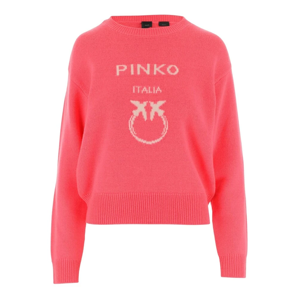 Pullover laget av ullbesetningshals pinko logo inlay og kjærlighet fugler lange ermer ribbet kanter rosa laget i porselen komposisjon: 100% ull pullover laget av ull mannskap nakke pinko logo inlay og kjærlighet fugler lange ermer ribbet kanter rosa laget i Kina -komposisjon: 100% ull