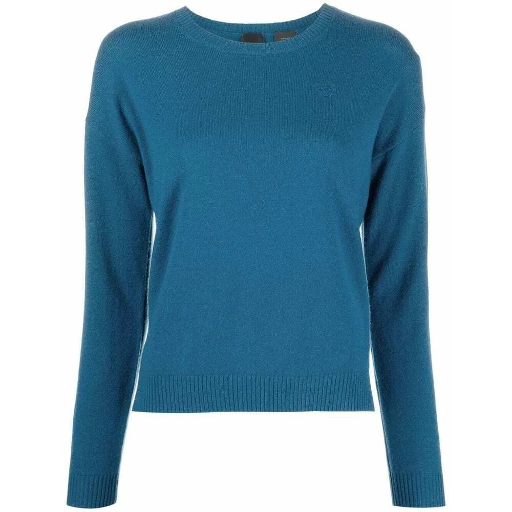 Pinko gensere logo-yrkende kashmir-genser fra Pinko med blå, kashmir, strikket konstruksjon, brodert logo ved brystet, ribbet kant, mannskapshals, lange ermer og rett hem.
