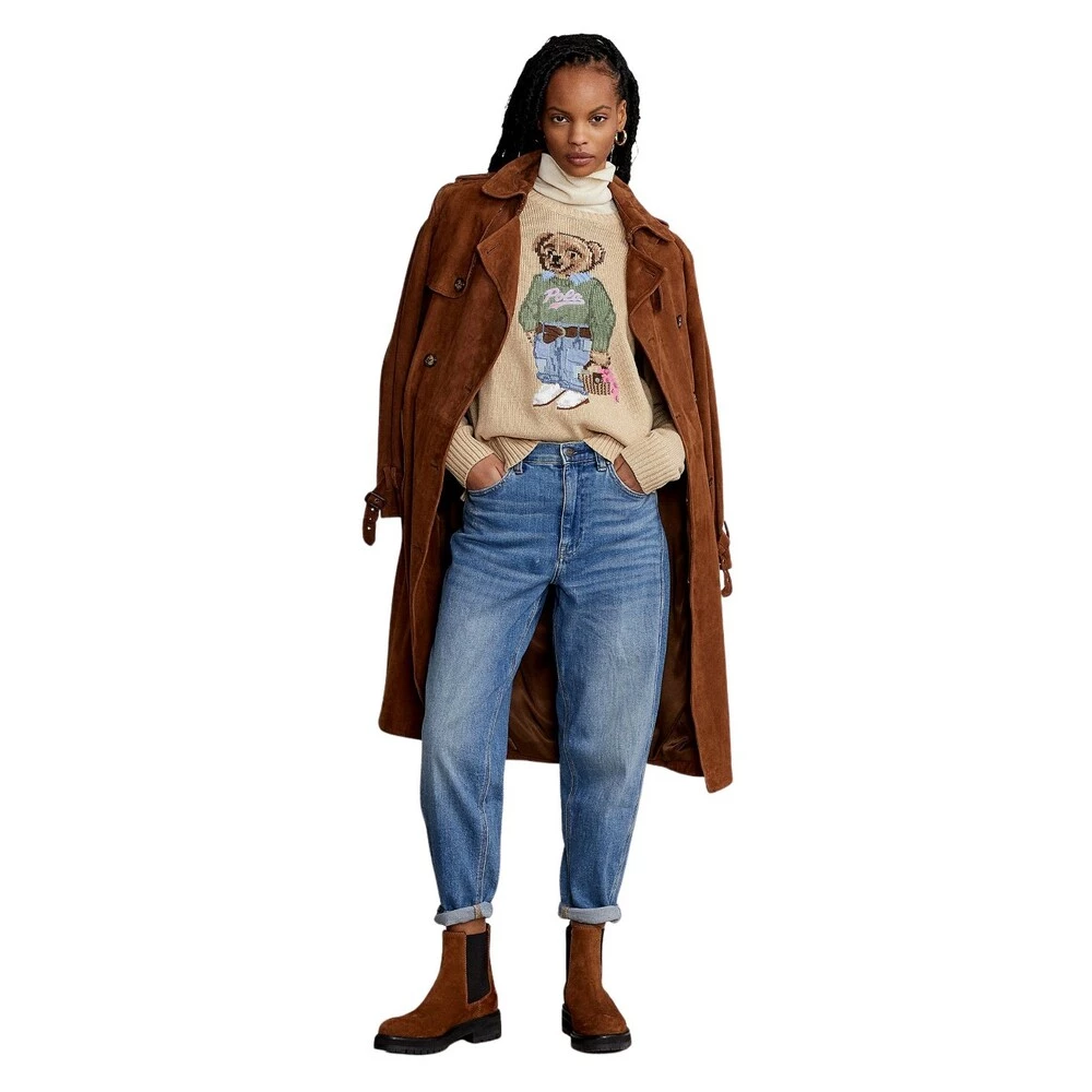 New Orleans Polo Bear Sweater fra Polo Ralph Lauren. En myk ribbestrikket genser med rund hals. Polo Bear er brodert på forsiden av genseren. Polo Ralph Lauren New Orleans Polo Bear Sweater Tan Multi Smal passform Modellen er 178cm og har på seg størrelse S Lange ermer Bomull Håndvask Artikkelnummer 211872738 001