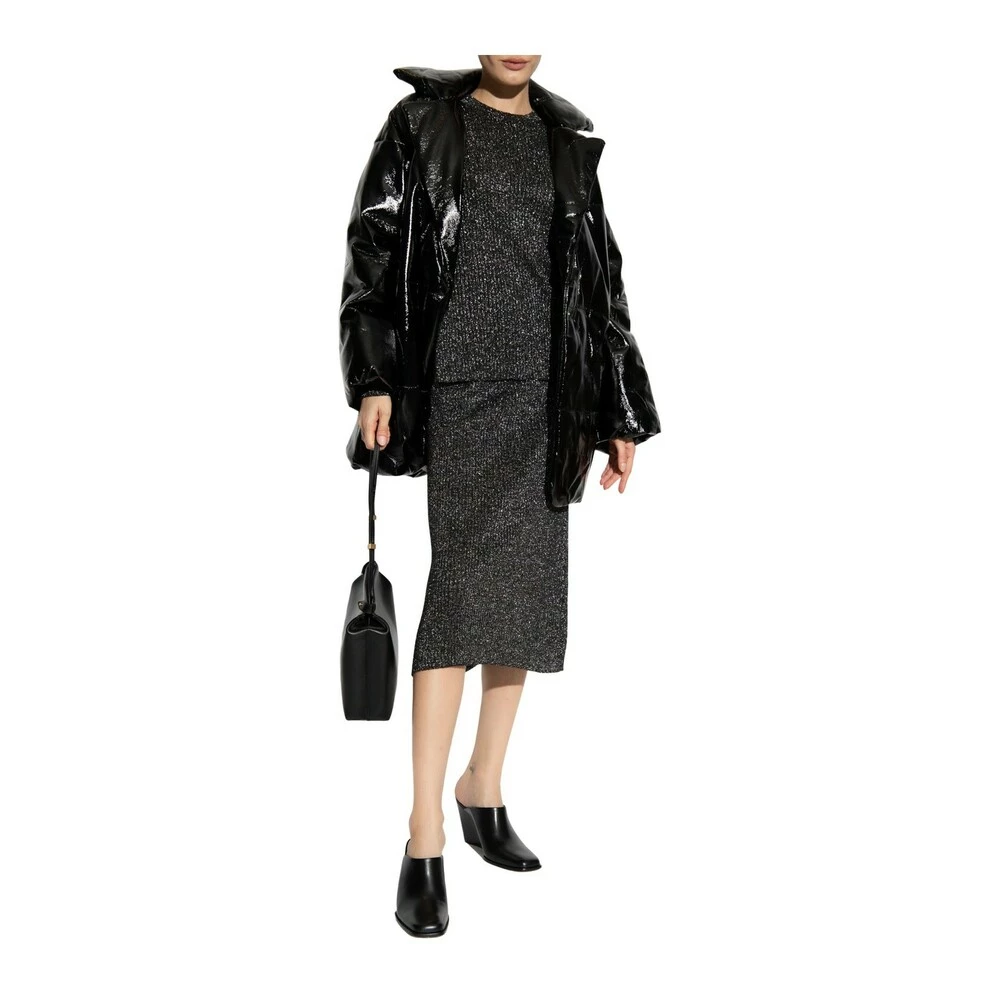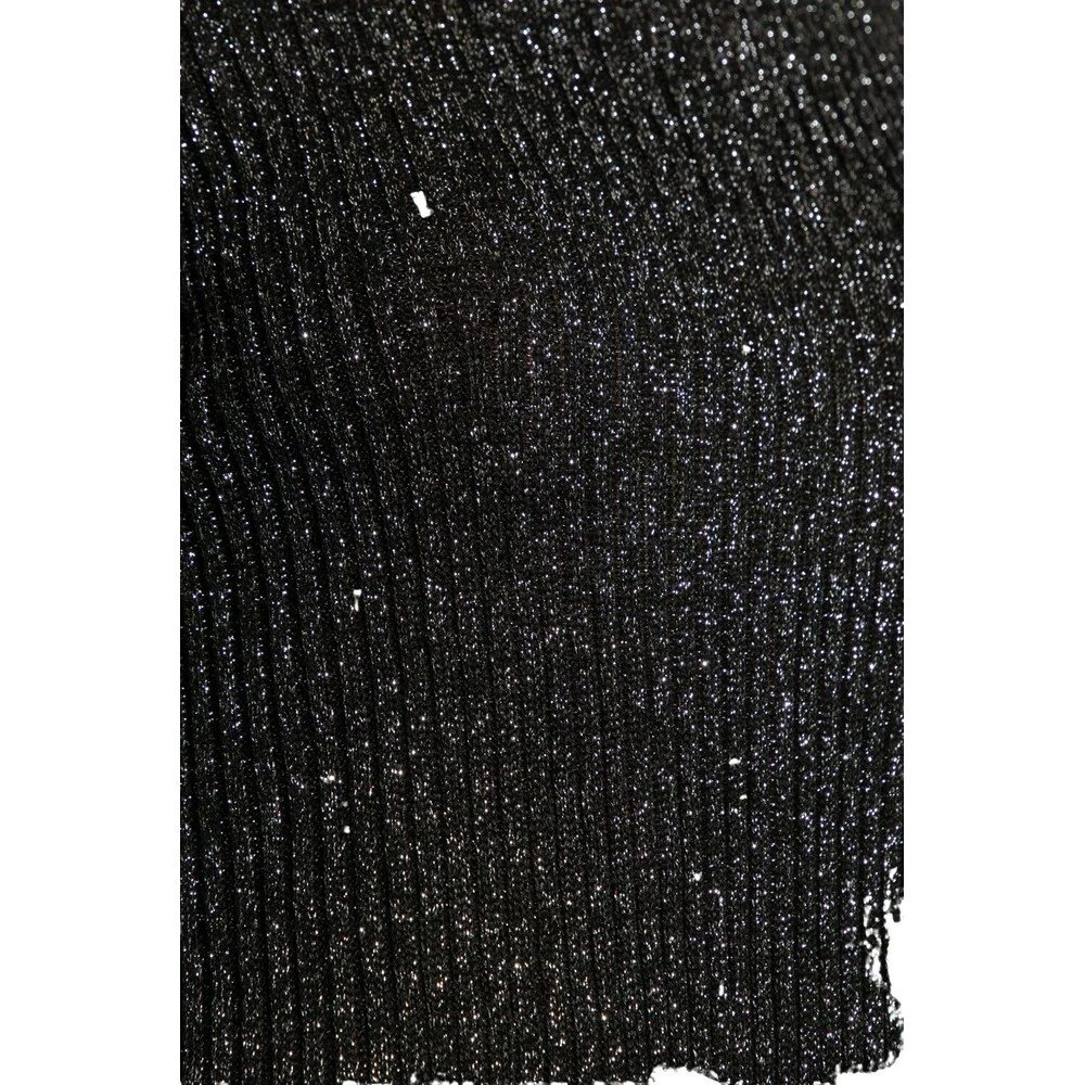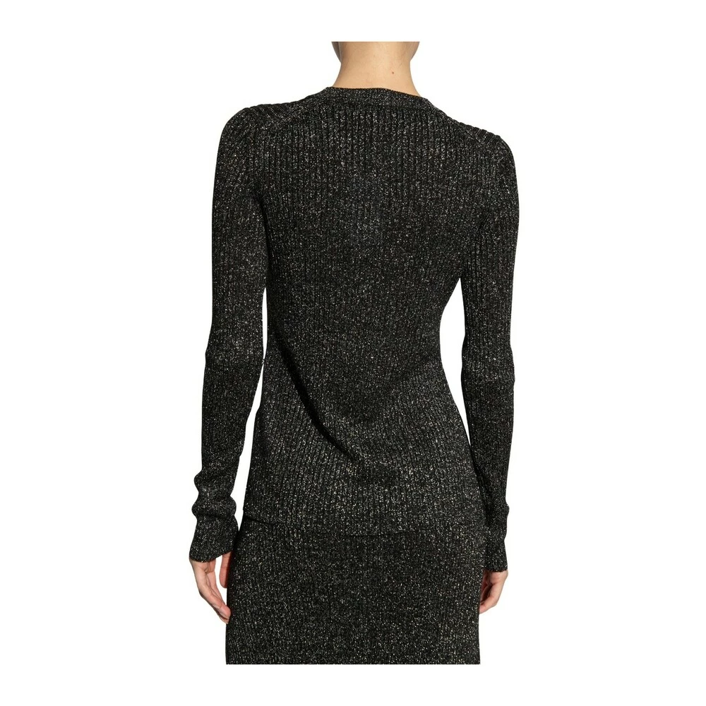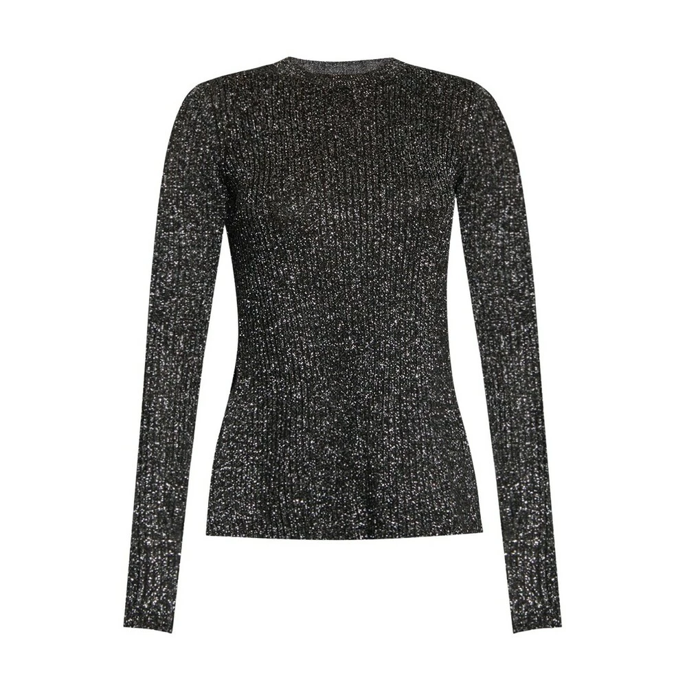 Svart og sølv-tone topp fra Proenza Schouler White Label. Denne stilen er laget av ribbestrikket med en formtilpasset silhuett, og har en elastisk rund hals, sidespals, lange ermer og blanke Lurex-garn.