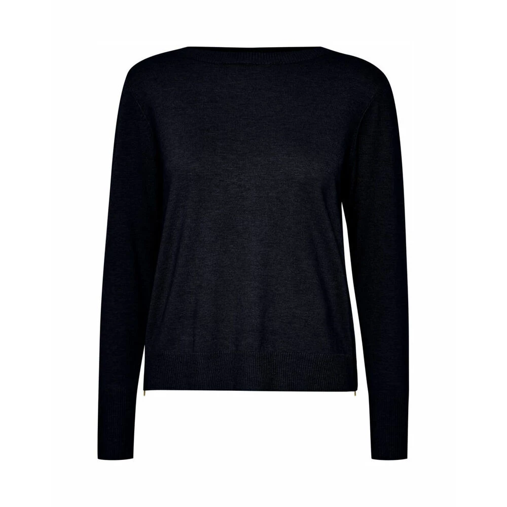 Tynn genser med fine detaljer, båthals, glidelås nederst på begge sider. 80 % viskose, 20 % polyester. vaskes på 30 grader.
