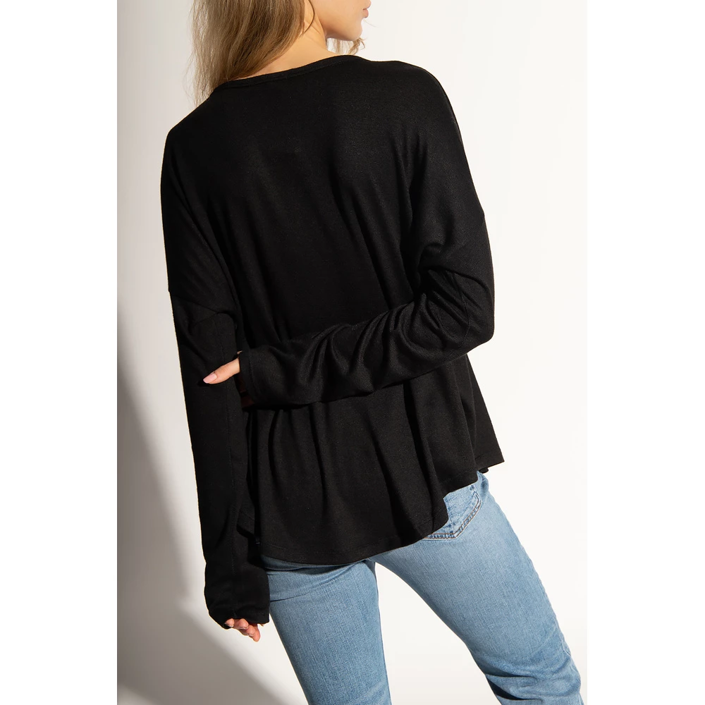 Svart topp fra Rag & Bone. Denne stilen er laget av en fin strikk med ribbet detaljering, og har en rund hals og lange ermer,