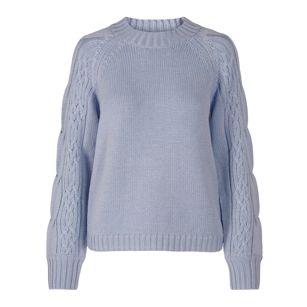 Flott genser fra Riccovero med raglanstrikkede ermer med flettemønster.