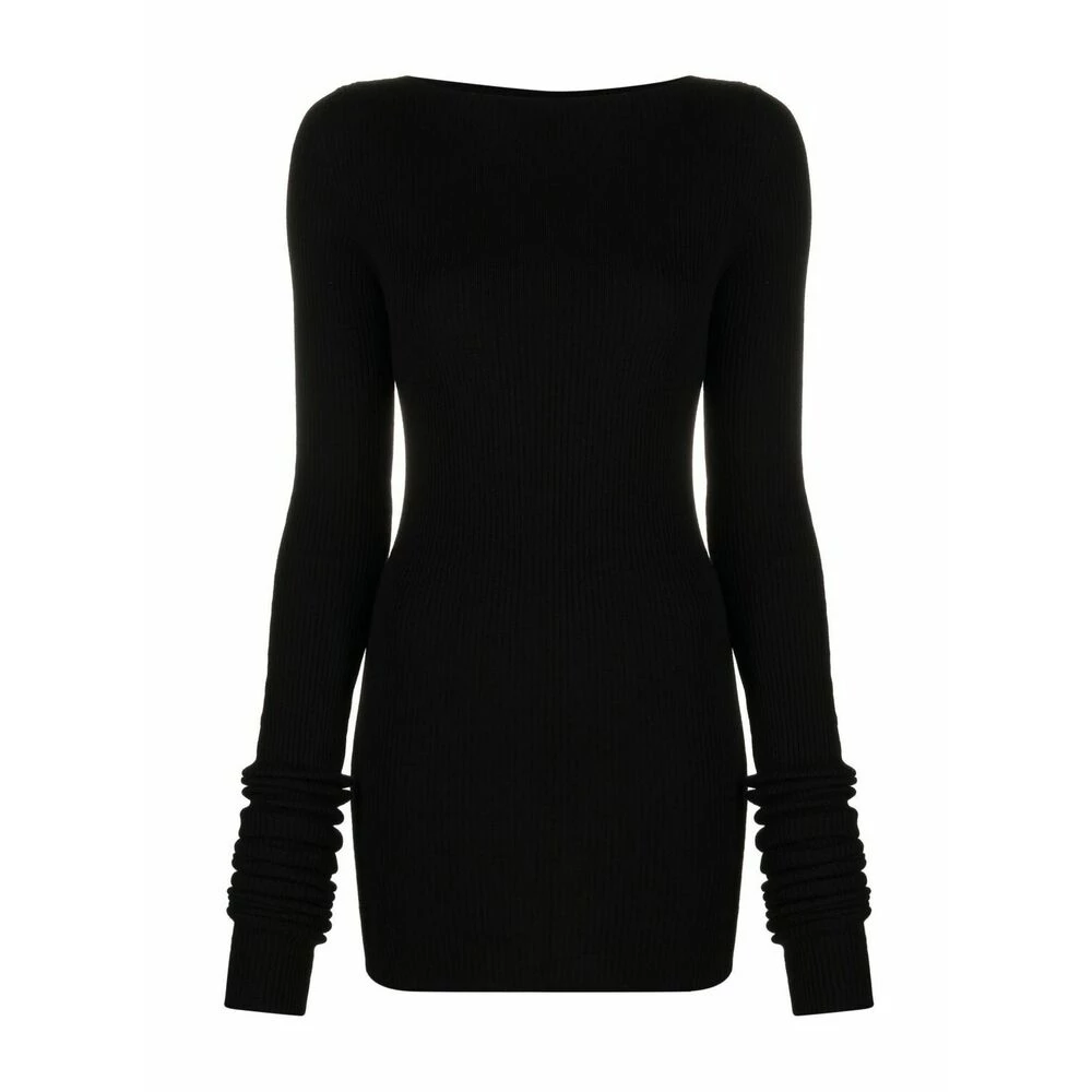 Rick Owens gensere svart båthalsstrikket genser fra Rick Owens med svart, jomfru ull, ribbet strikk, utskjærte detaljer, båthals og ekstra lange ermer.