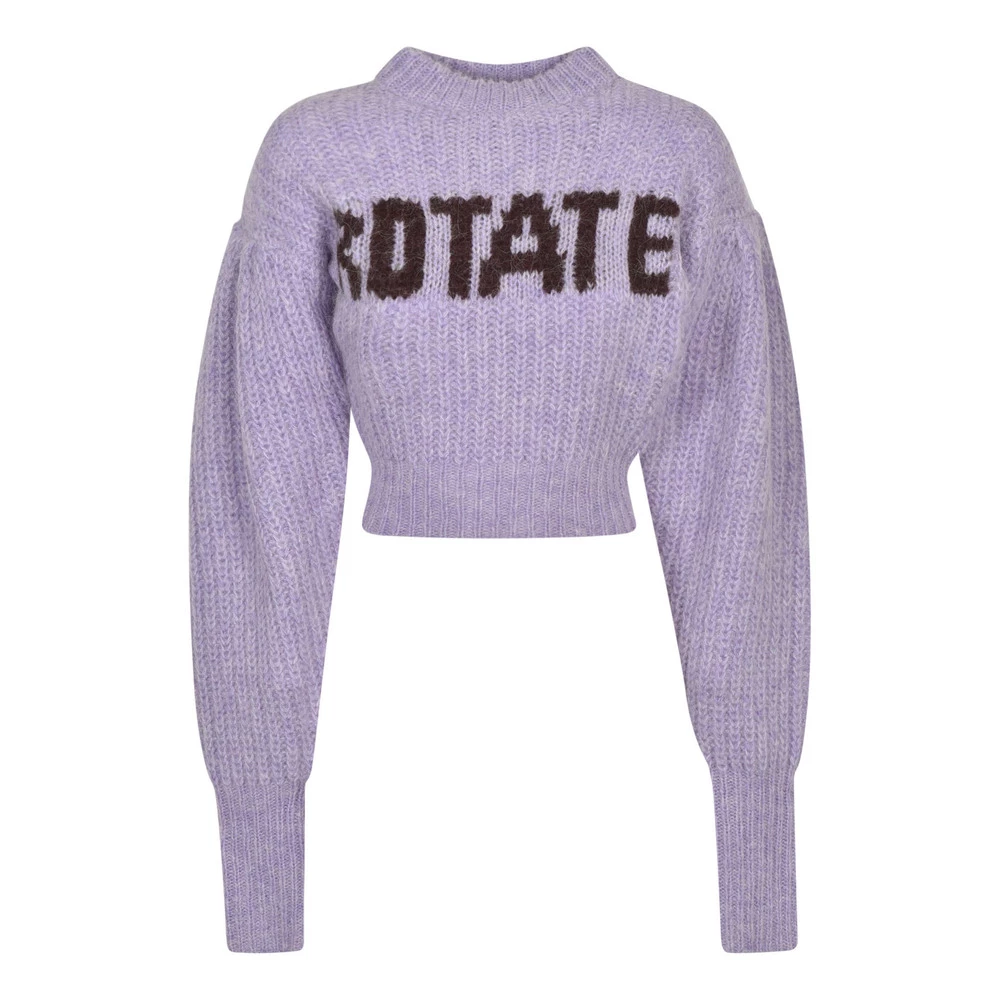 Roter gensere Adley-logo Intarsia-strikket beskjærte jumper fra rotering med syrin lilla, ullblanding, intarsia-strikket logo, rund hals, lange raglan ermer, slipp skulder og ribbet trim.