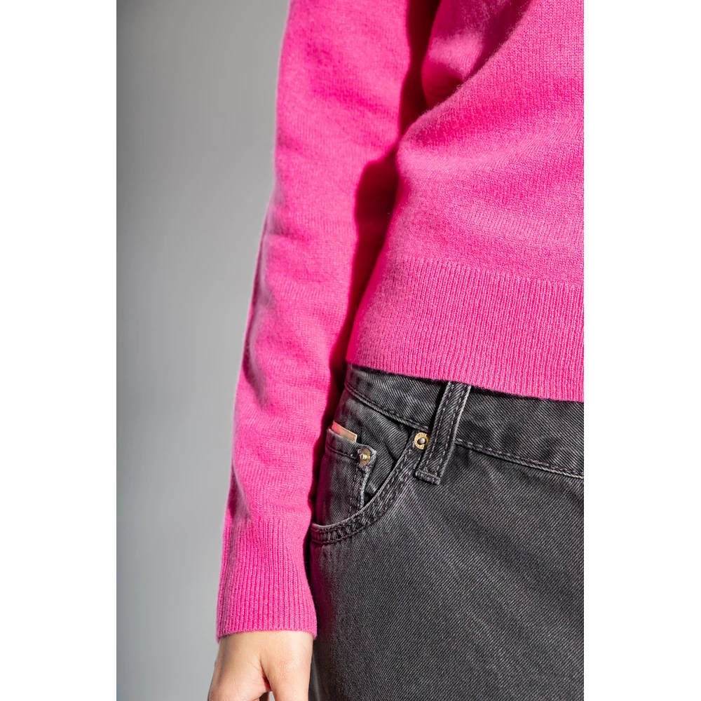 Pink ‘Boston’ genser fra Samsoe Samsoe. Denne designen er laget av kashmir med det gode Cashmere Standard -sertifikatet, og har ribbestrikket ved hemmen og mansjettene.