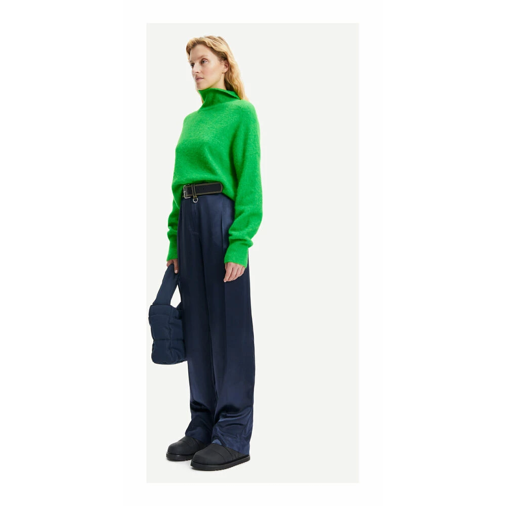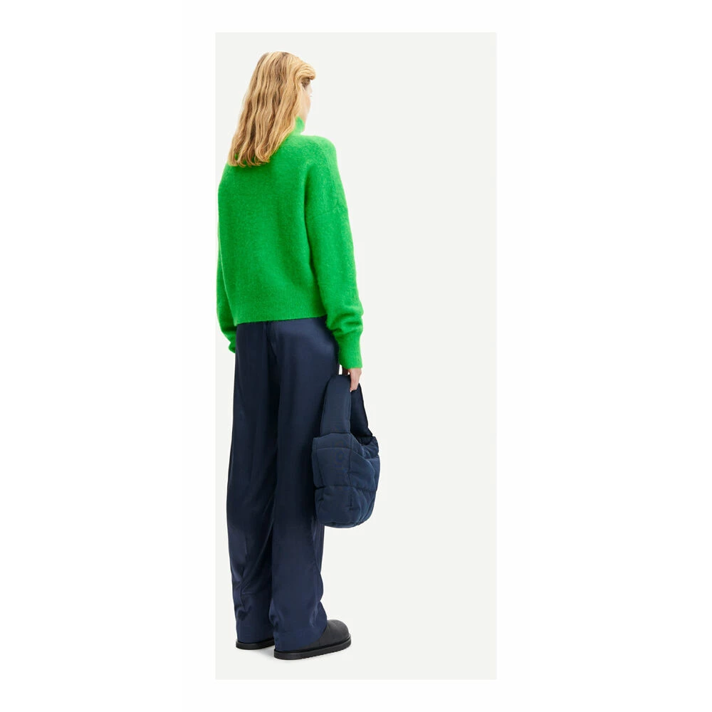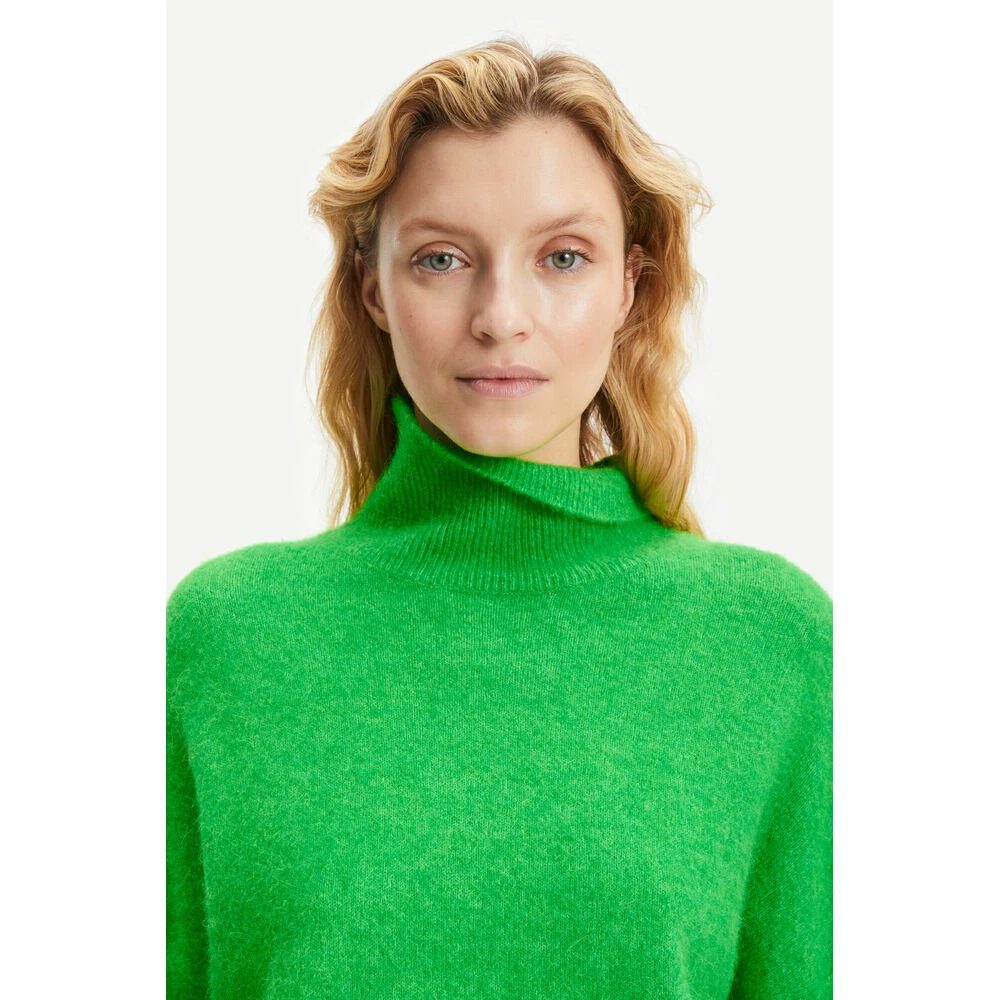 Nola er en grønn turtleneck fra Samsøe Samsøe. Avslappet passform, lange ermer og lang hals. Laget av 32% ull, 32% alpakka, 30% resirkulert polyester og 6% elastan.